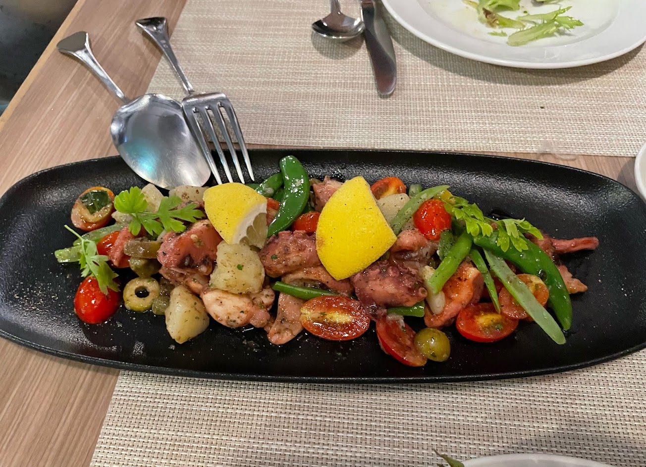 第一次造訪這個地方,但下次我永遠不會選擇。服務非常好,可以感受到服務員的親切和禮貌。然而,所有的菜都不好吃。我們點了水牛城馬蘇里拉起司配番茄和酪梨,開胃菜是慢煮章魚和土豆,燉牛肉寬麵條,主菜是番茄醬海鮮義大利麵。水牛馬蘇里拉起司還可以。章魚太有嚼勁,橄欖和醋的味道太濃了。對於燉牛肉寬麵條,寬麵條煮得太過頭了。海鮮義大利麵還可以。如果辣椒多一點的話味道會更好。