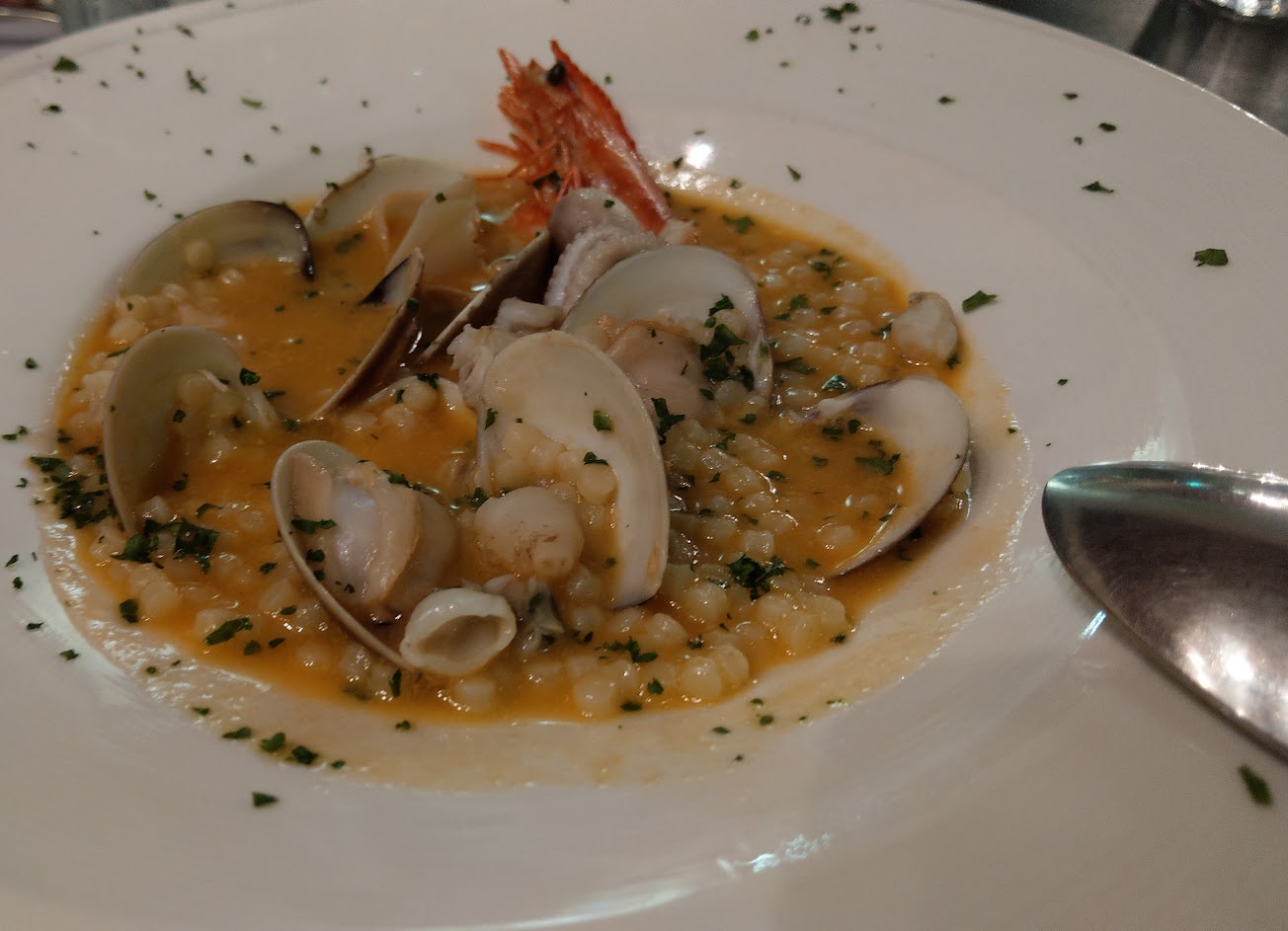 一家讓人驚豔的義大利餐酒館 第一次吃到海鮮珍珠麵 特殊口感令人回味 新鮮又大顆的淡菜不需太多調味料 就吃得到海洋的味道 是我吃過最好吃的淡菜