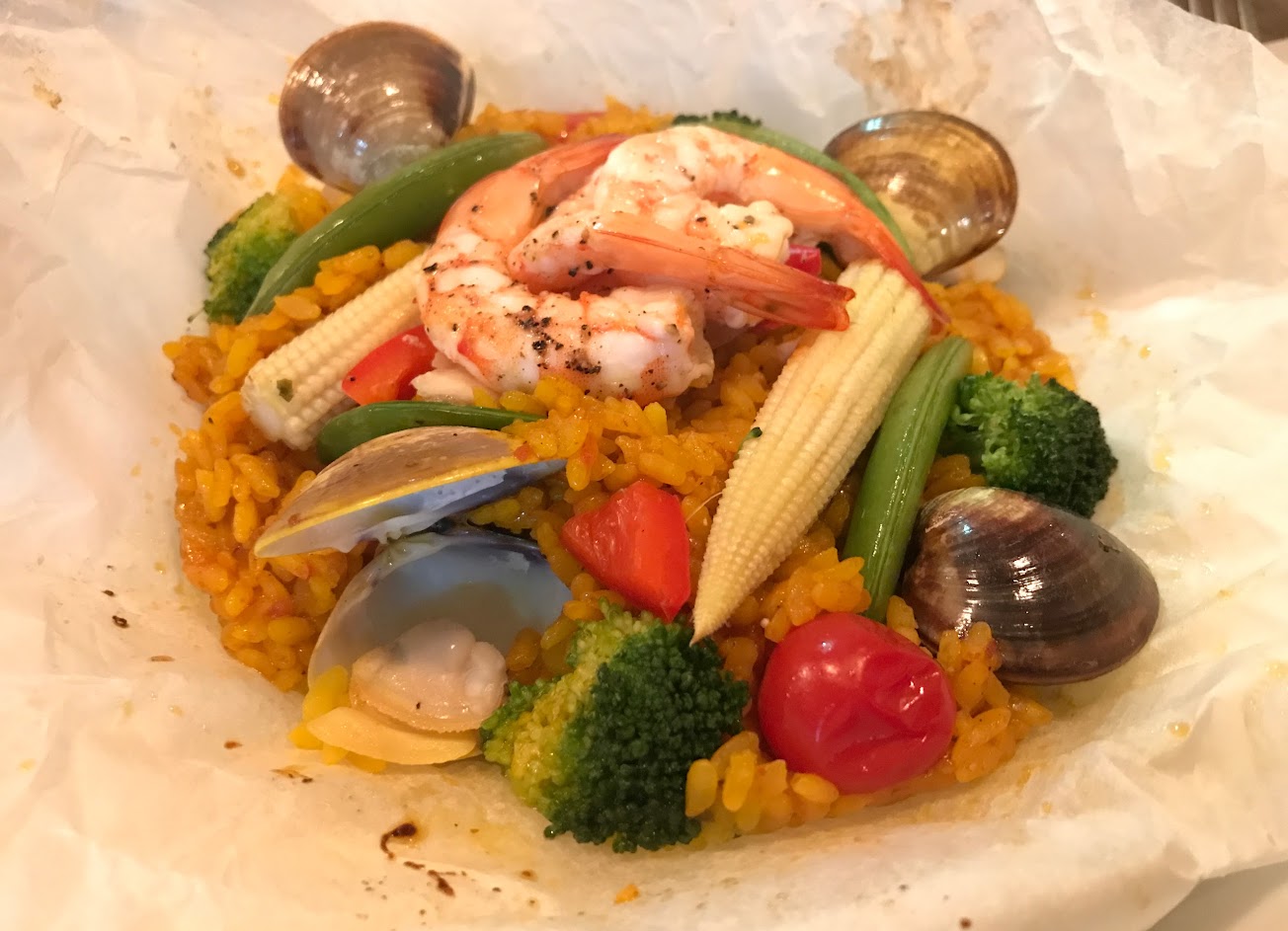 餐點尚可,我點的北海道干貝明太子義大利麵口感濃郁還不錯吃,朋友點的西班牙海鮮紙包飯也不錯,但另一位朋友點松阪豬燉飯就覺得不值這價位,可以考慮看看。