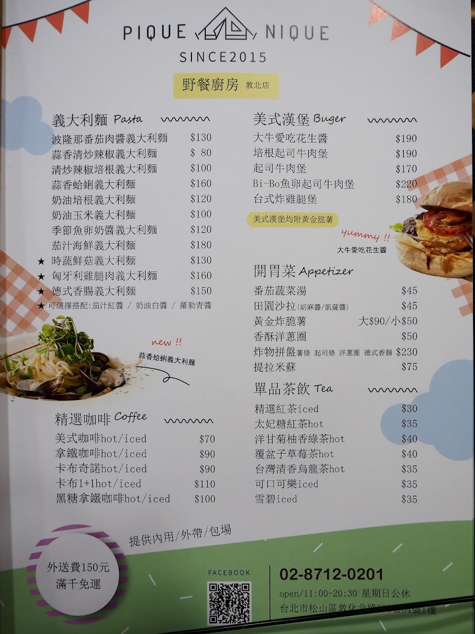 燉飯&義大利麵,在民生重劃區這一帶相對少數的義式餐廳,有著高性價比餐點的『野餐廚房 PIQUE NIQUE CAMP』,一進門會覺得怎麼這麼小的感覺,少少幾張座位,但其實這還有地下室的空間可以用餐,還有小朋友的玩樂小天地,算是親子友善餐廳。小弟就在附近上班,中午來這邊頓午餐,可以在這舒服的用餐環境中,放鬆一下心情,餐點的部分不論是義大利麵還是燉飯都挺美味,價格上也都不貴。另外這邊的咖啡可是店家自己烘豆的說,這次沒品嚐到,下次要來嚐嚐。???