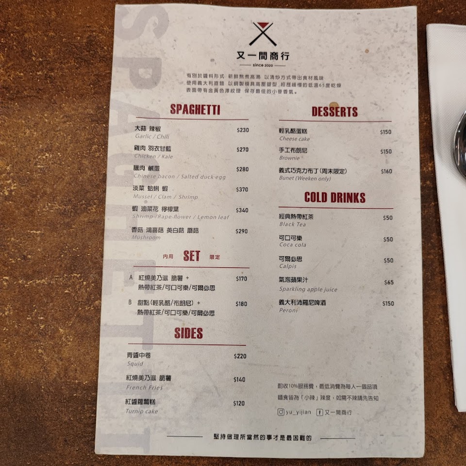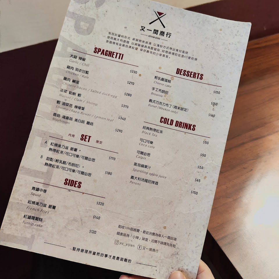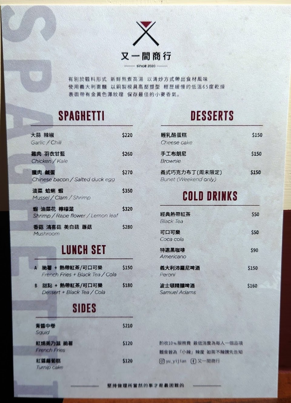 2024最新在地推薦餐廳的菜單_又一間商行 Spaghetti 清炒義大利麵專賣的菜單、圖片