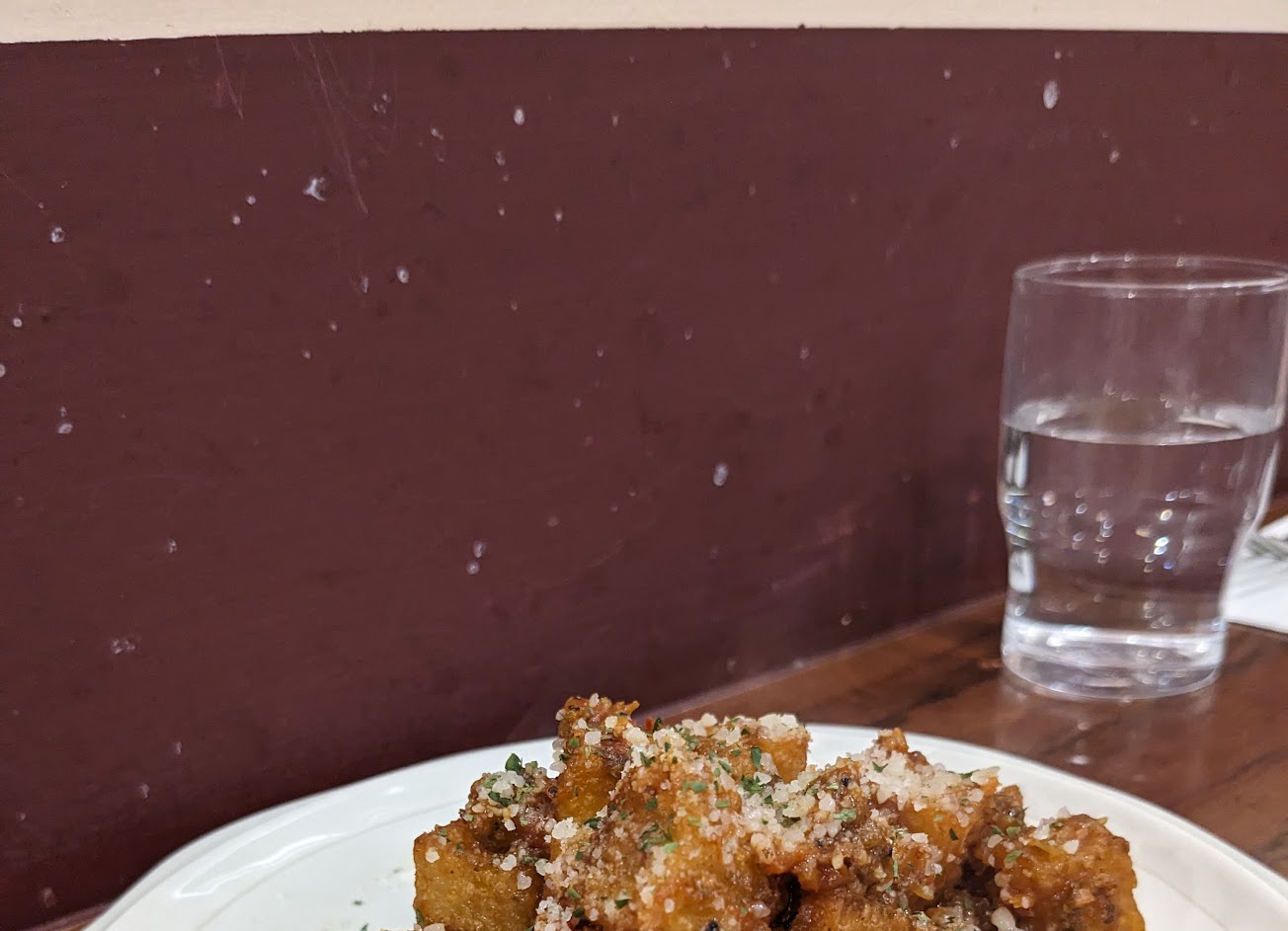 上餐前會提供水。還會給一小碗點的麵附的高湯底供品嚐,第一次看到義大利麵店有這樣的服務。