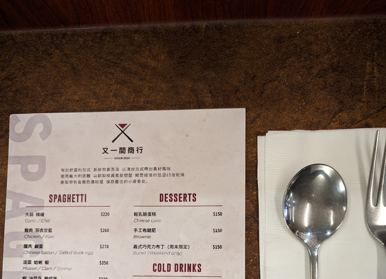 以清炒方式推出了六種特色義大利麵 上英文會話課的同學分享這家很好吃 更加激起我對「又一間商行」的興趣