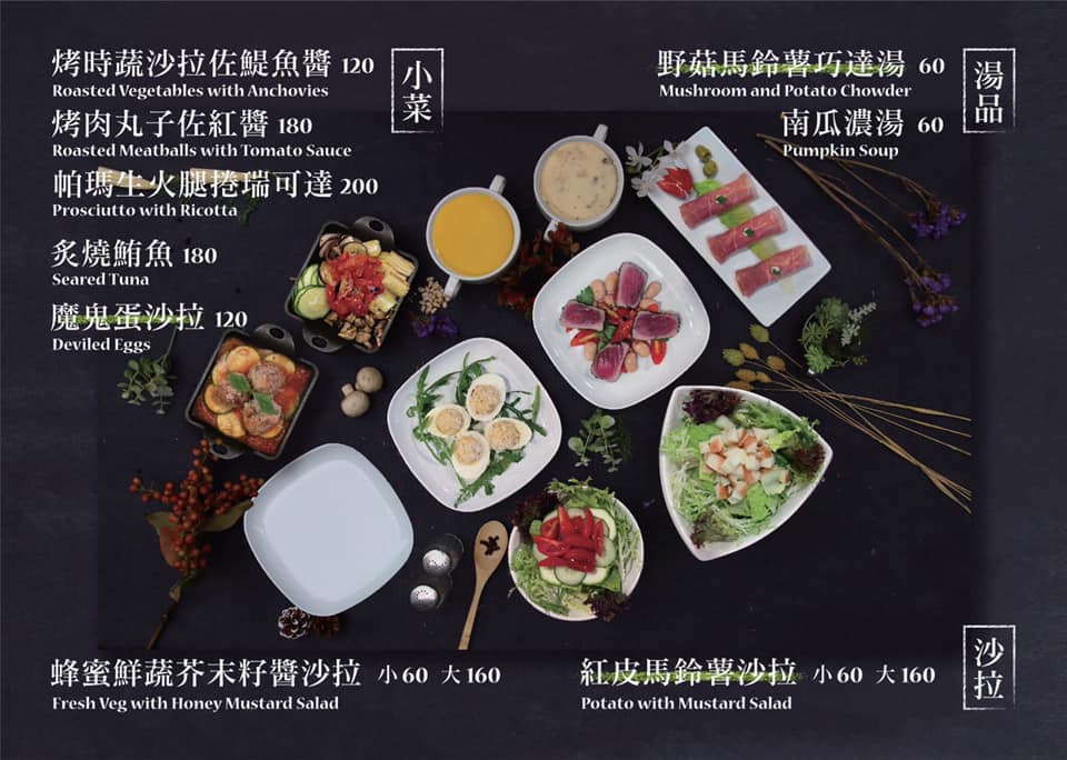 烤肉丸子佐紅醬$180:是用鑄鐵鍋烤的,下面鋪番茄泥與櫛瓜。上來很燙,要先放涼一下再吃,整體也烤的很好,丸子外脆內軟,裡面還是濕潤的,不像很多店烤的過硬過乾,櫛瓜則完全熱透並保有水份。不過可惜的是只有三小顆,算是一人份。