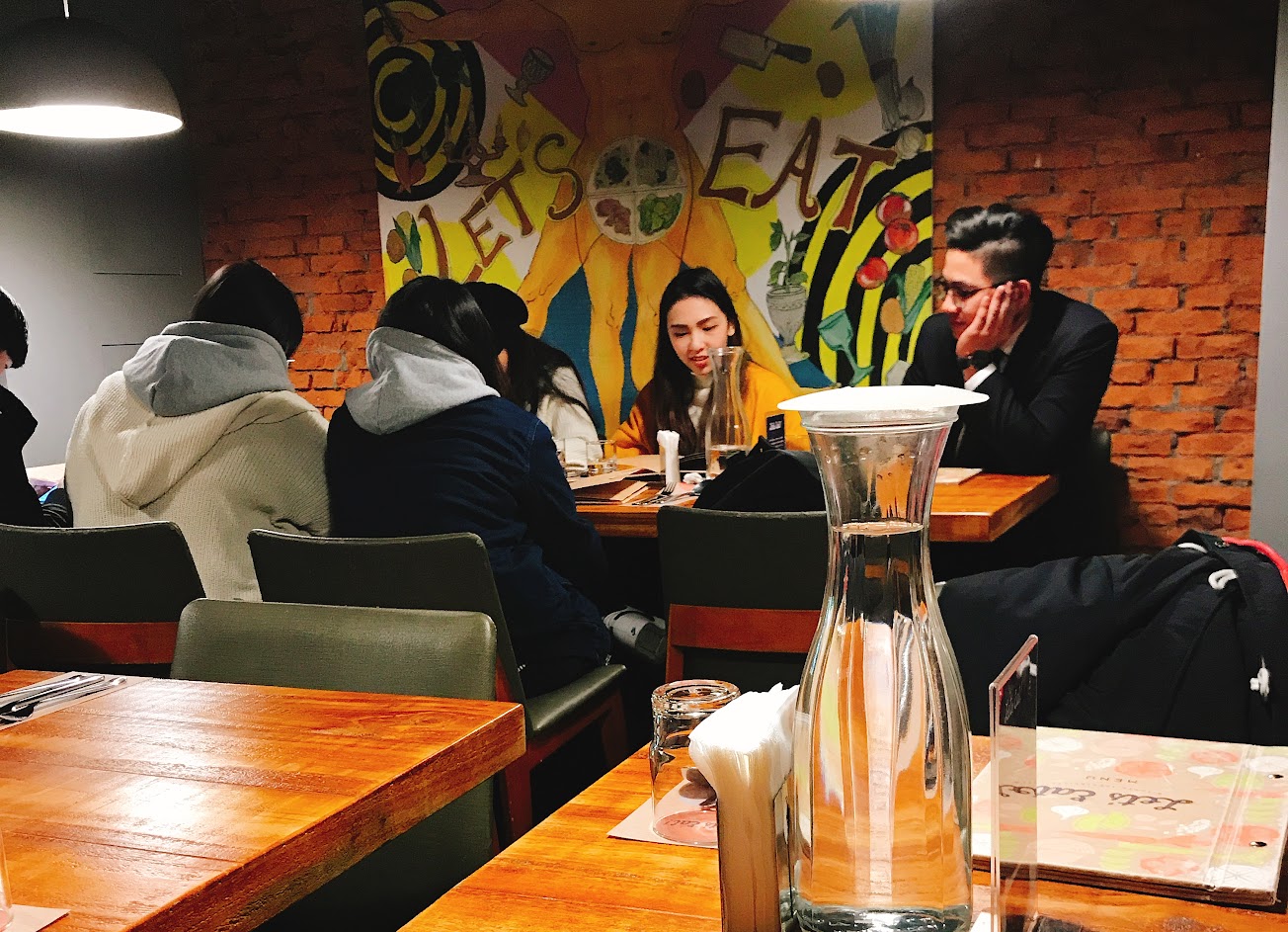 氣氛不錯,不會太吵,很適合聊天聚會。 廁所乾淨但男女共用一間,人多就要等很久。 自助區提供夾子與小餐盤,方便大家分享菜餚。 服務生加水不是很勤。 味道不錯,我沒去過義大利吃過正統義式料理,這家口味偏鹹。