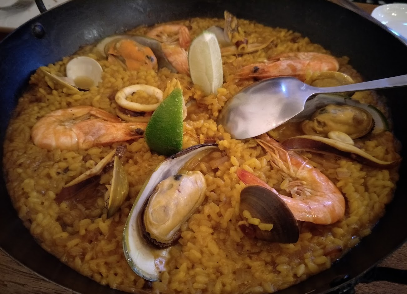 西班牙海鮮燉飯的米心可以再硬一點,菜色特別