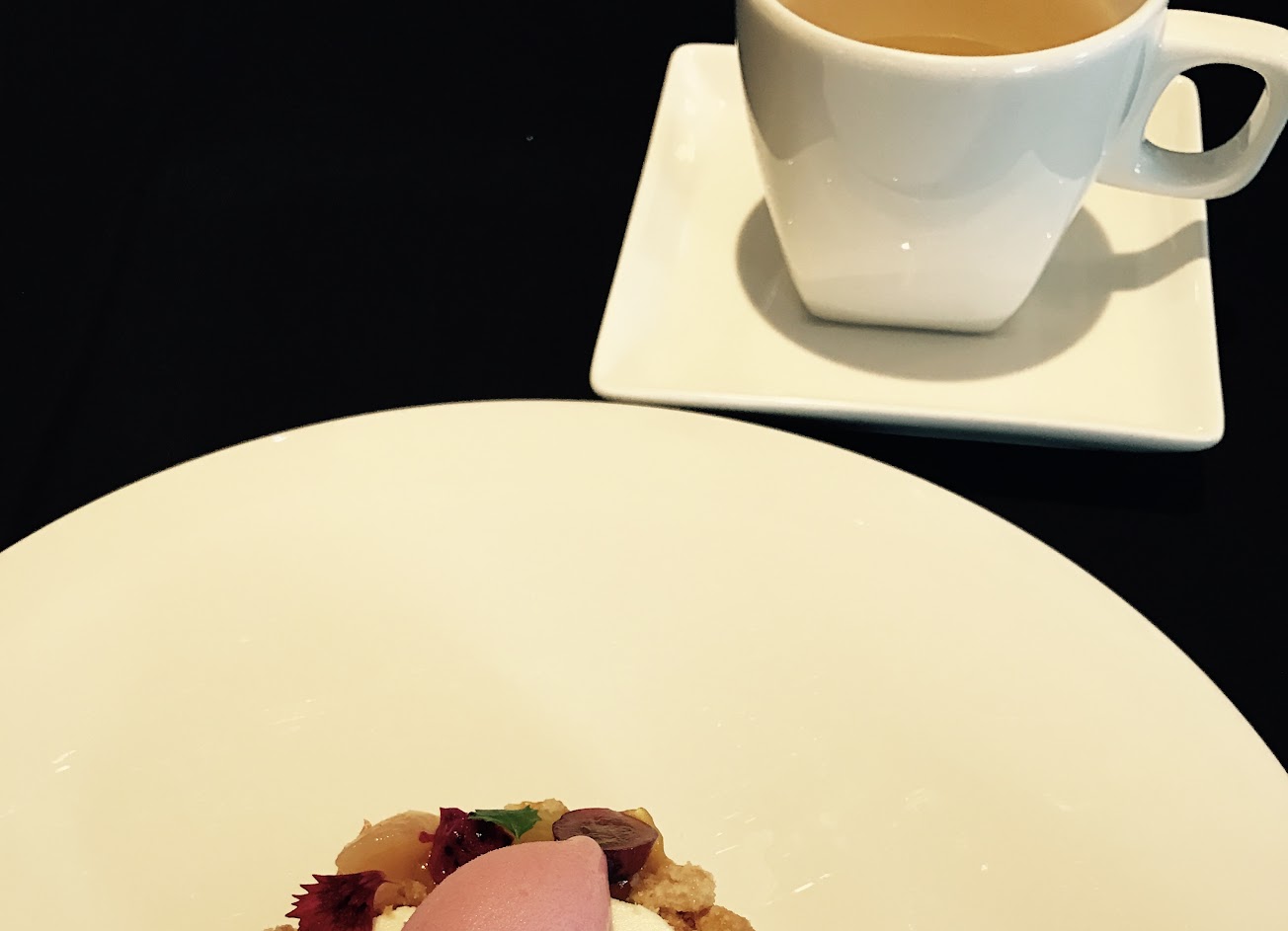 氣氛舒服的一間溫暖小店,這次前菜是北海道干貝,干貝非常新鮮,搭配佐醬更清爽;湯品是牛肉澄清湯,服務生在生牛肉上現場淋了熱湯,清湯滿滿的牛味又不膩;主餐是油封鴨,肉質非常細膩,鴨皮雖不是非常酥脆的那種,但也是很有特色,與朋友分享了戰斧豬排更是令我驚艷,第一次吃到這麼軟嫩又厚實的豬肉;接下來上了荔枝軟糖與伯爵餅乾搭配茶品,最後是檸檬蛋糕,上面的覆盆莓冰沙搭配檸檬非常適合當作今天的完美Ending