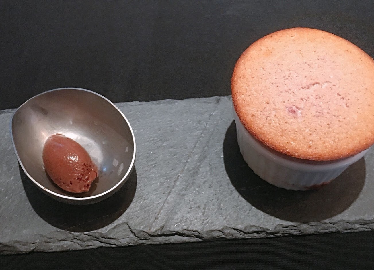舒芙蕾櫻桃口味佐巧客力冰淇淋 搭配的很好。
