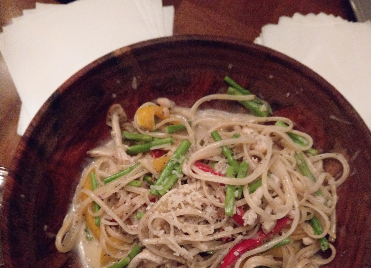 餐點推蒜味牛肉細扁麵,調酒推蘋果派
