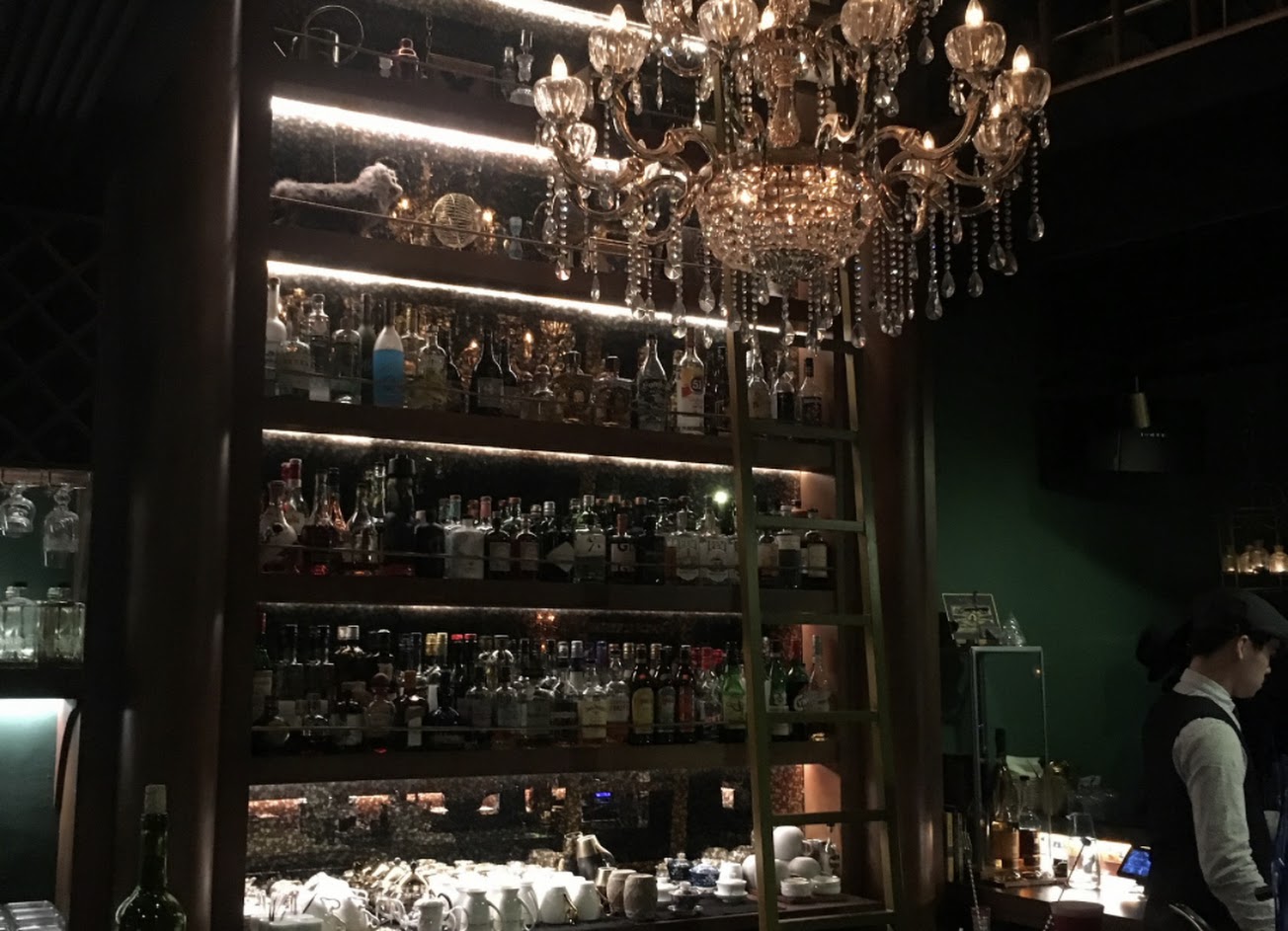 特色在晚上9點後會調暗燈光變更酒吧的氛圍,裝潢滿特色的,酒櫃和水晶燈和旋轉階梯很適合拍照。