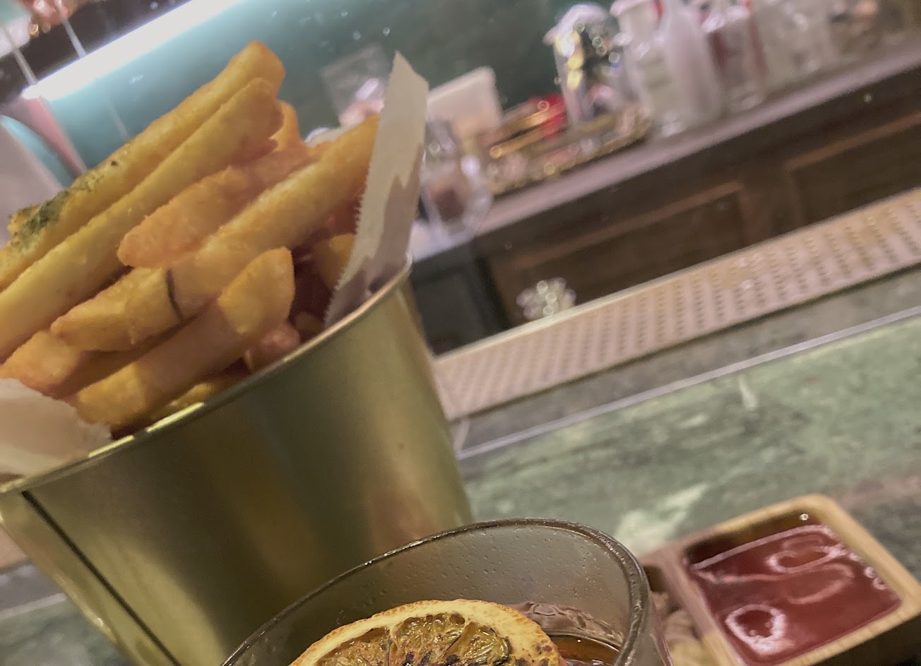 是間門口超難找、沒有招牌、超級不起眼的酒吧 好險有去過的朋友帶路才找到 先說這邊的餐點,薯條會搭配松露醬,味道很特別,不夠可以請服務人員再補,很好吃 義大利麵類的餐點都蠻好吃,缺點就是等太久,等到規定用餐時間都過超過一半了才來 酒的部分真的是很華麗,也可以單獨跟酒保指定喜歡的口味做特調 不過送上來的口味見仁見智,我是點到有一杯好喝,一杯蠻像藥水味的,酒的部分我評價大概普通偏上 餐廳價位不低,但還是值得來體驗一次的酒吧