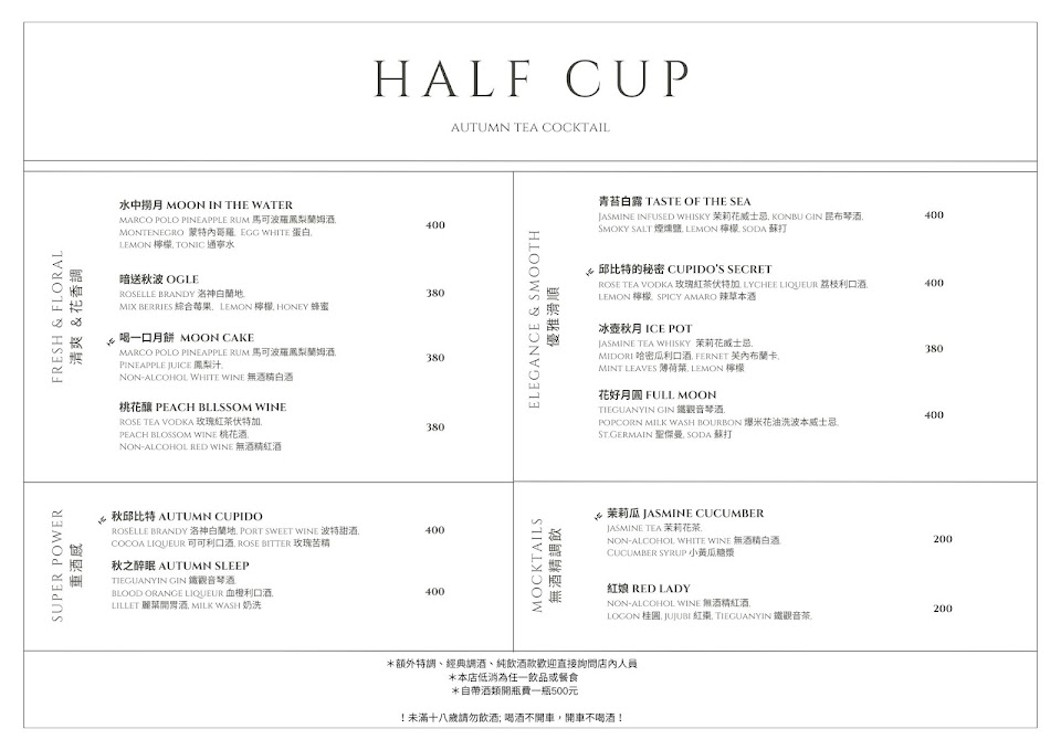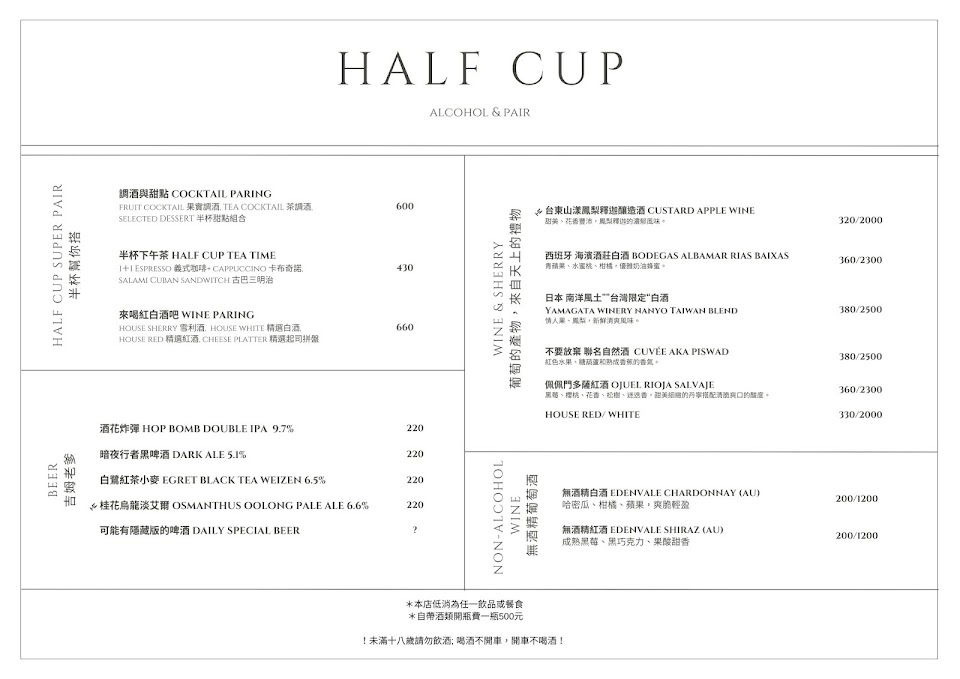 2024最新在地推薦餐廳的菜單_HALF CUP 半杯的菜單、圖片