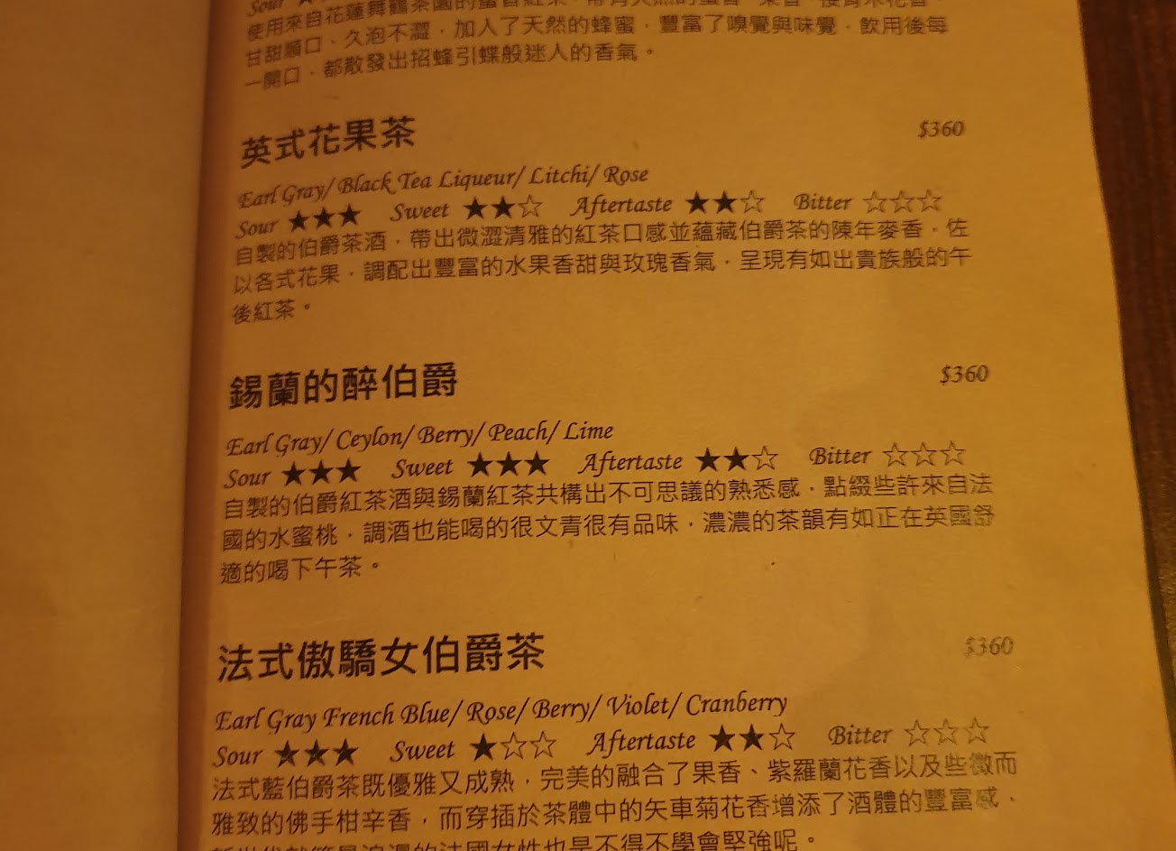 茶酒為主,重點是點了3杯都很好喝,茶味跟酒味的平衡很順口