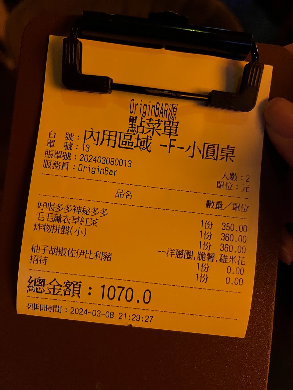奇奇服務好!shot很好喝!東西好吃 茶酒好喝 非常好? 餐點:5 服務:5 氣氛:5