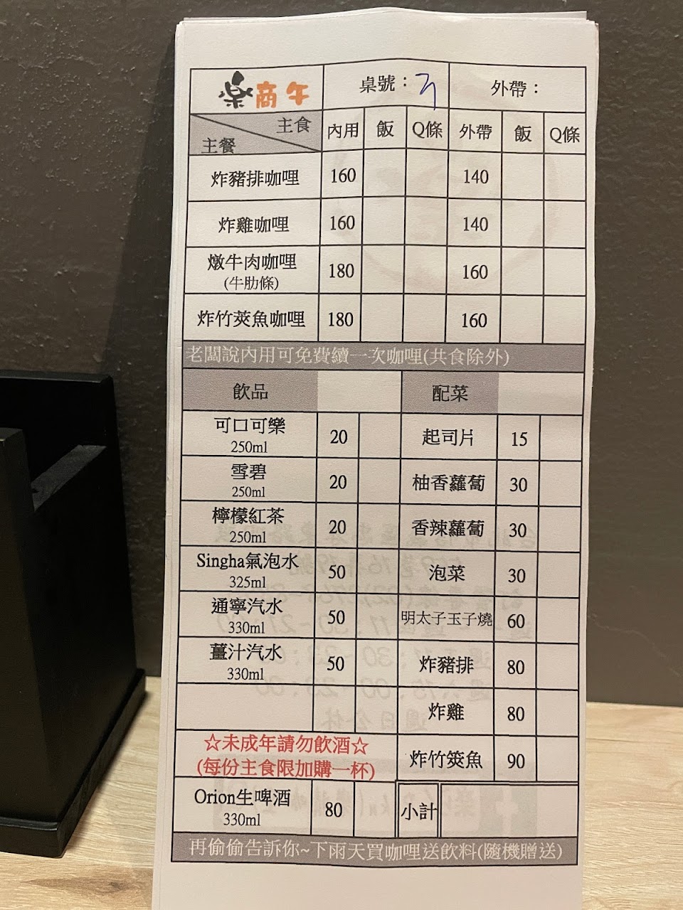 外帶的價格會減少20元,內用好像可以加飯加咖哩
