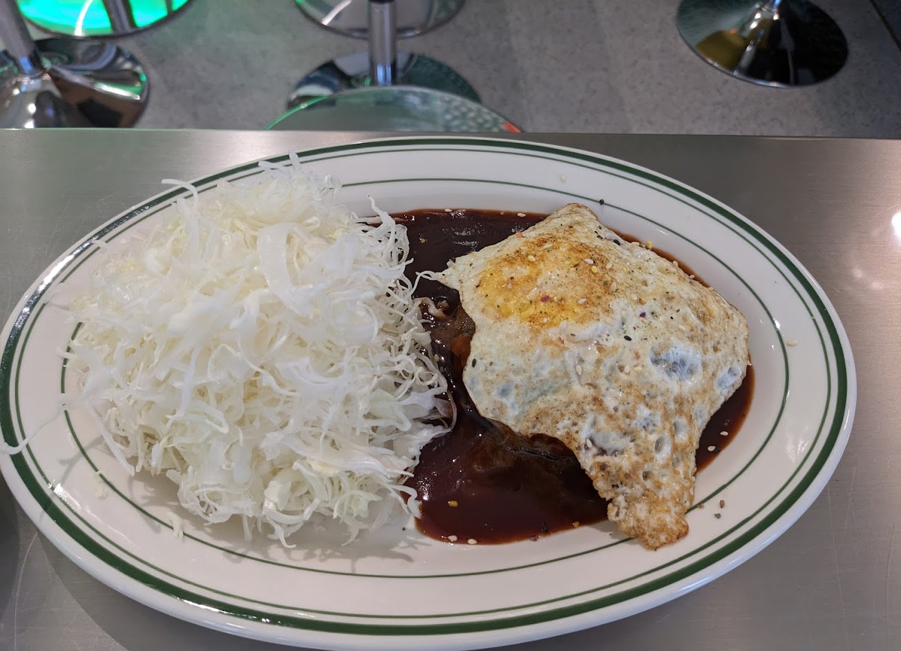 我們四個人點了各種各樣的菜,每道菜都很棒!我最喜歡的是日本漢堡。它多汁又嫩,醬汁濃鬱,味道濃鬱。旁邊的捲心菜是對這道頹廢菜餚的絕妙讚美。上面的雞蛋煮得很完美。