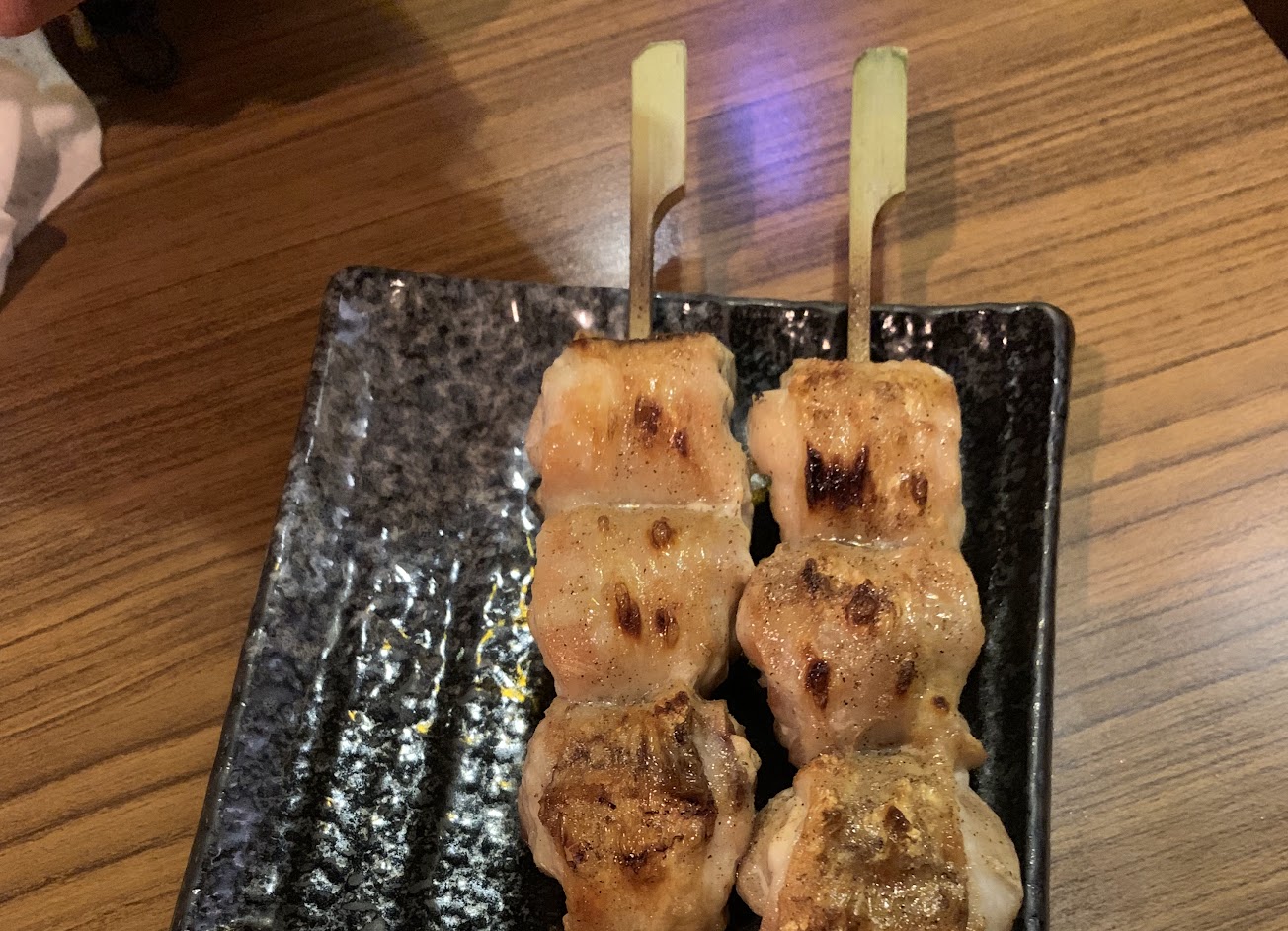 主打串燒的居酒屋,特別推薦他們的鹽烤美國牛小排(250元/2串)、鹽烤鮮中卷(280元)、鹽烤松阪豬(260元)。店內環境乾淨舒適,氣氛不錯。用餐時間是兩小時,不過禮拜天晚上也不太會有人在排隊,時間壓力不大。價位是居酒屋行情,如果年輕男生要吃得飽加點啤酒大約1100元。整體而言餐點品質不錯、用餐環境舒適,喜歡日式串燒的話值得一訪。