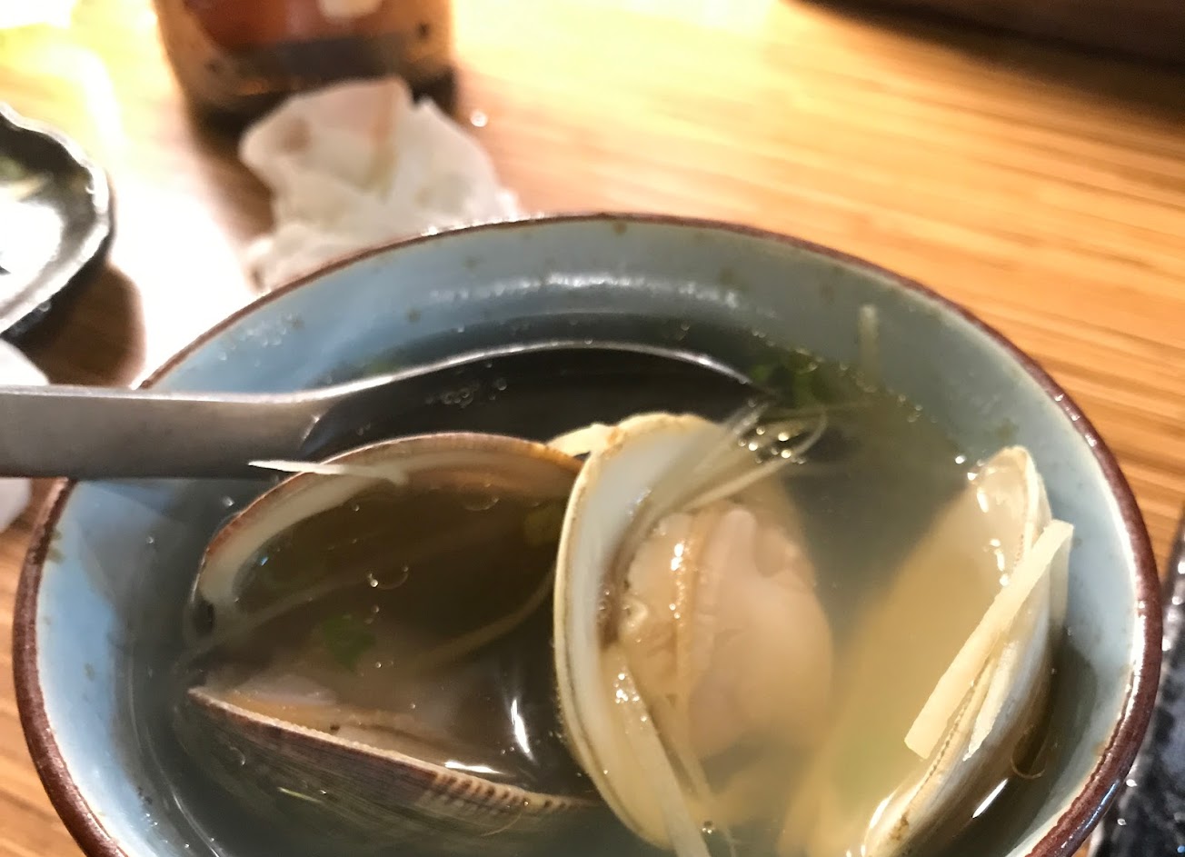 東西好吃!柚子酒也很不錯,培根干貝超好吃必點,蛤蜊湯有點鹹,不過單價稍稍高,不小心就超過預算了? …