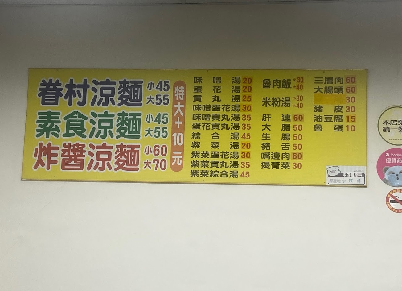 2024最新在地推薦餐廳的菜單_眷村涼麵的菜單、圖片