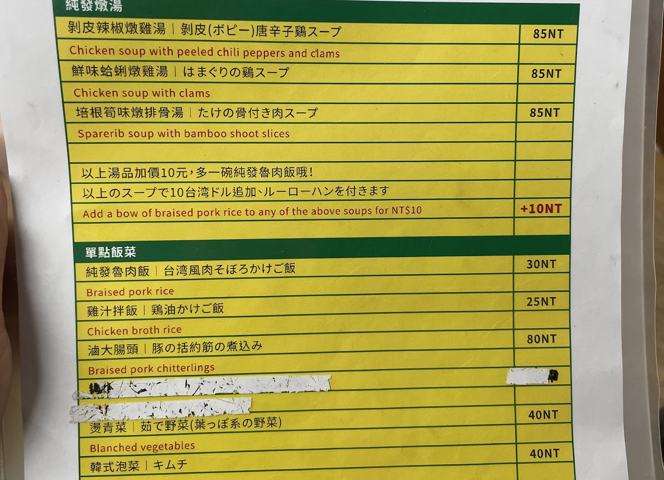 美味的雞湯和台灣滷肉飯。真的值得一遊;)