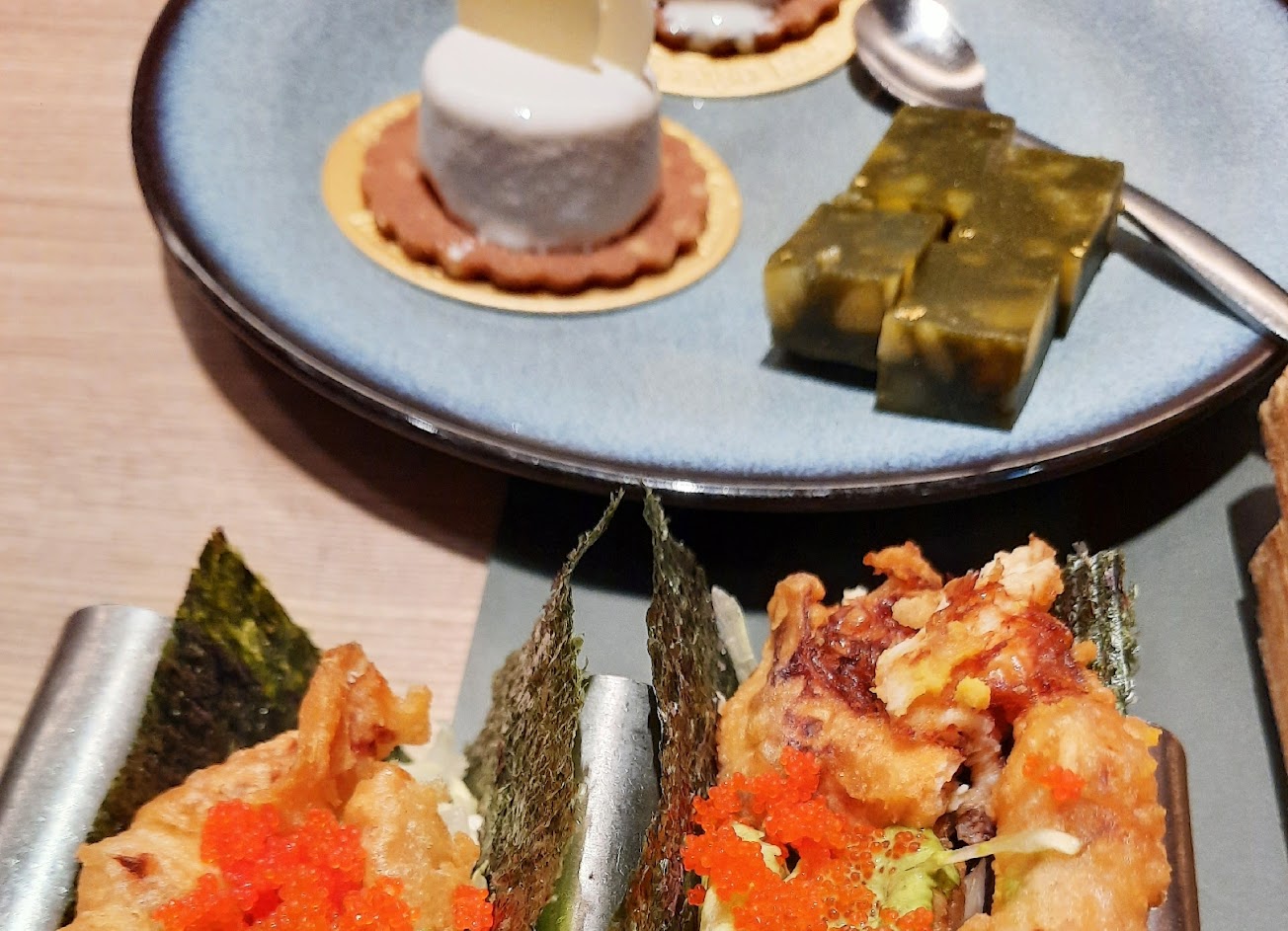 但還是有些地方覺得不是很優,例如握壽捏得太緊實了,所以吃起來口感都不是很好,炸牡蠣本身裹粉的調味超好鹹,吃到後面是配飯一起吃的。最後覺得兩千多的餐廳最不行的是塑膠高腳杯,高腳杯是歪的,還是繼續給客人使用外,杯緣用手摸也不是光滑的,而是有凹凸不平的顆粒感,會特別去摸也是因為嘴唇有異樣感,後來發現在流血,因為不確定是不是杯子割到,所以沒告知店家,但塑膠杯便宜的很多種,這樣高級的餐廳杯緣不是光滑的實在覺得很糟,另外桌子也不平,壓到桌子時會搖晃,好怕那杯歪的飲料會翻到,在擦拭桌面時,服務生內部應該要能做好調整。