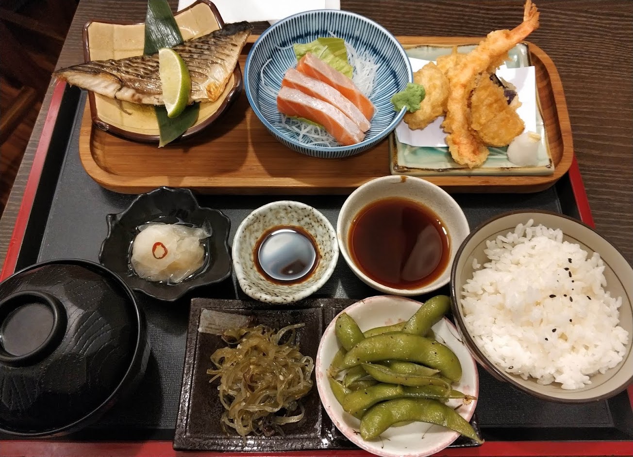 烤鯖魚好吃,天婦羅也很棒,白飯很香,蛋捲跟漬物也很棒!