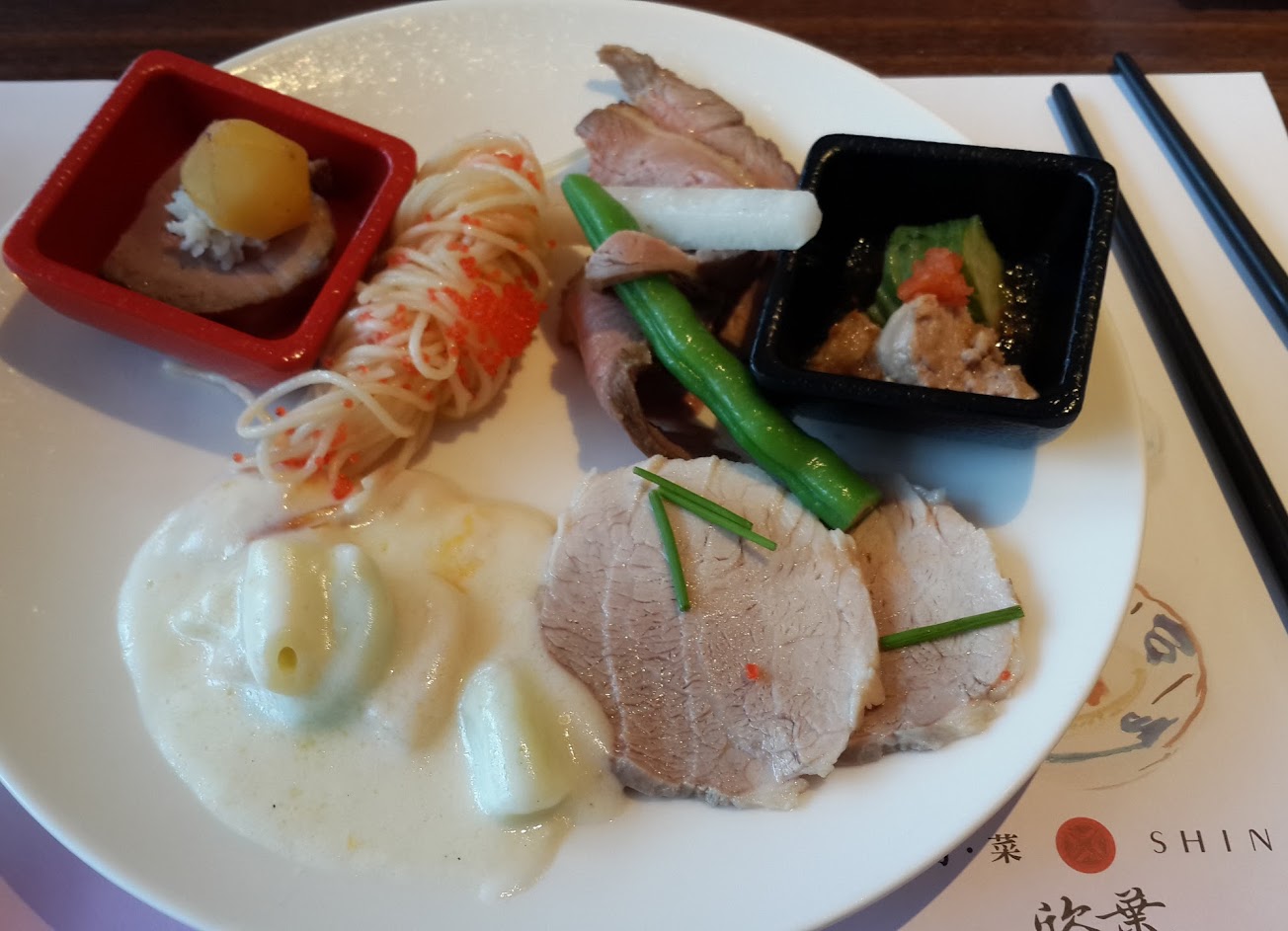 食物款式相對於這個在假期收每人800元來說,吃到以日式料理做主題的,是不錯的。 飲料有紅、白和梅酒,質素是見人見至了。 生魚片有5,6種,一般比較多人要的鮭魚肥美,鮪魚也不錯吃,即場握手卷和壽司的大小, 師傅掌握得不錯。 海鮮是蝦子和青口,炸物tempura似乎也很受歡迎,跟拿生魚片一樣,也要排隊。 熱盤熟食選擇較小,沙拉吧也不能與大飯店比較,湯類是日式偏甜的味噌湯, 蛤蜊湯和菇湯。 甜品種類可以。 整體來說, 欣葉在每個種類也有,但是不會有很多款式。