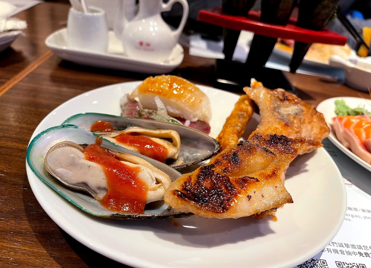 另外有在各區拿了一些魚,像是秋刀魚,或是熱食區的魚塊,就也都普普通通,主要是肉質都稍微粗糙,這樣的品質平常吃會覺得還可以,但如果是來這邊吃好料就會覺得有點浪費胃容量,真心認為還是鹽烤魚和湯裡的鮭魚最高!