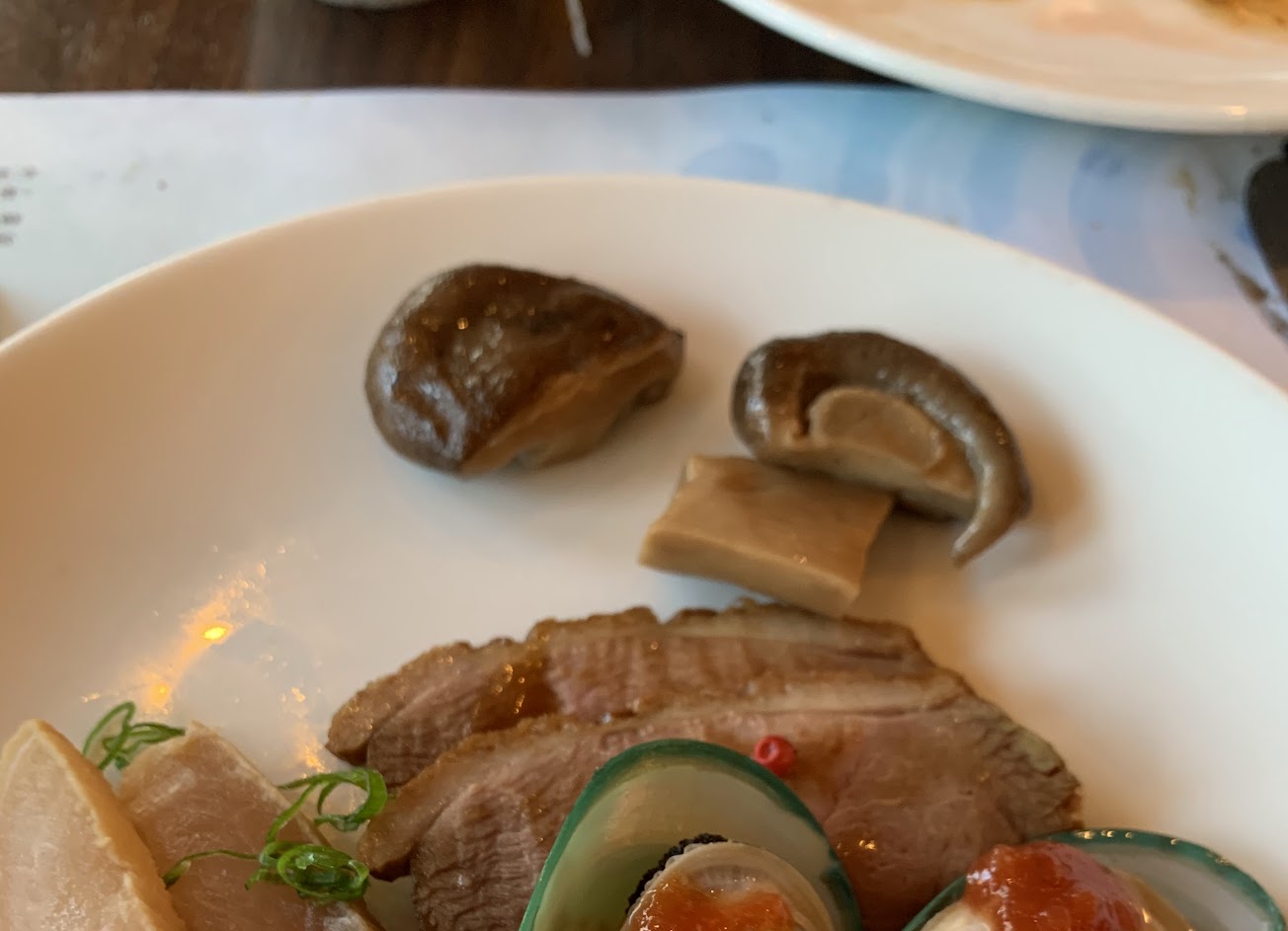 海鮮沒什麼特色,沒生蠔、龍蝦、鮑魚、螃蟹、天使紅蝦、黑鮪魚, 然後提供的蝦子,每個吃起來都不脆,軟軟沙沙的,講白話點,就是沒那麼新鮮,生魚片吃起來也普普通通。
