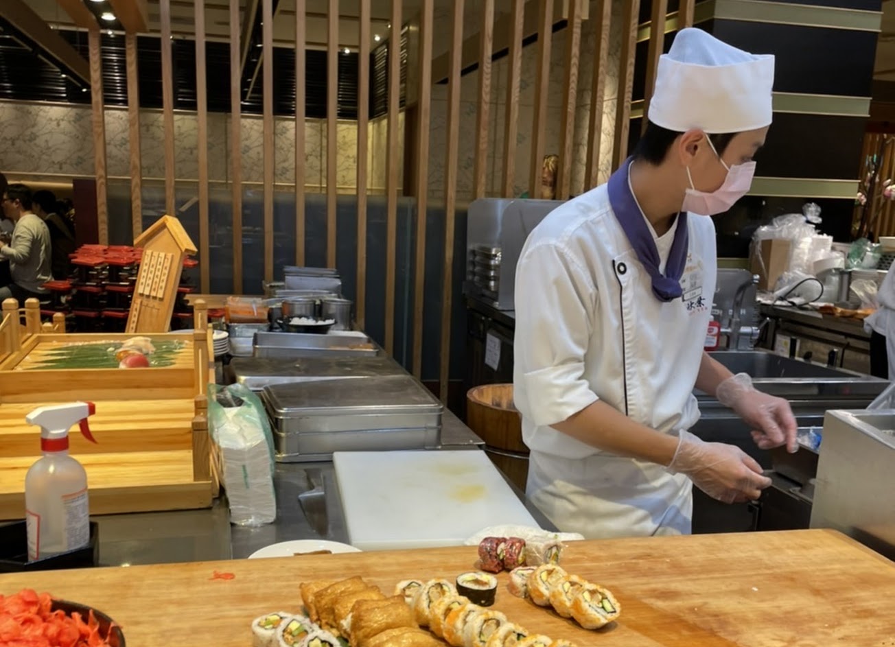 第一次吃自助日本料理,感覺還不錯,除了生魚片之外也有熟食、炸物、炒飯、茶碗蒸甚至甜品跟酒水等,也很貼心提供小杯的醋飲,會有人自動來幫你加茶。疫情期間需要戴口罩跟店家提供的手套才能去自助吧取餐,氣氛跟服務都算蠻好的,不過位置跟位置之間稍微有一點點擠