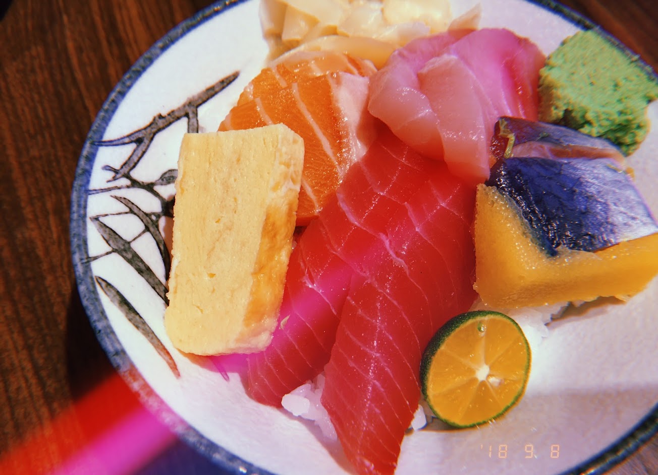 不推薦生魚片吃起來口感軟嫩,也不是平常在日本料理店吃起來有脆度的生魚片,生魚丼飯裡搭配煙燻花枝很不搭,價格親民便宜,大概只有價格的優勢。