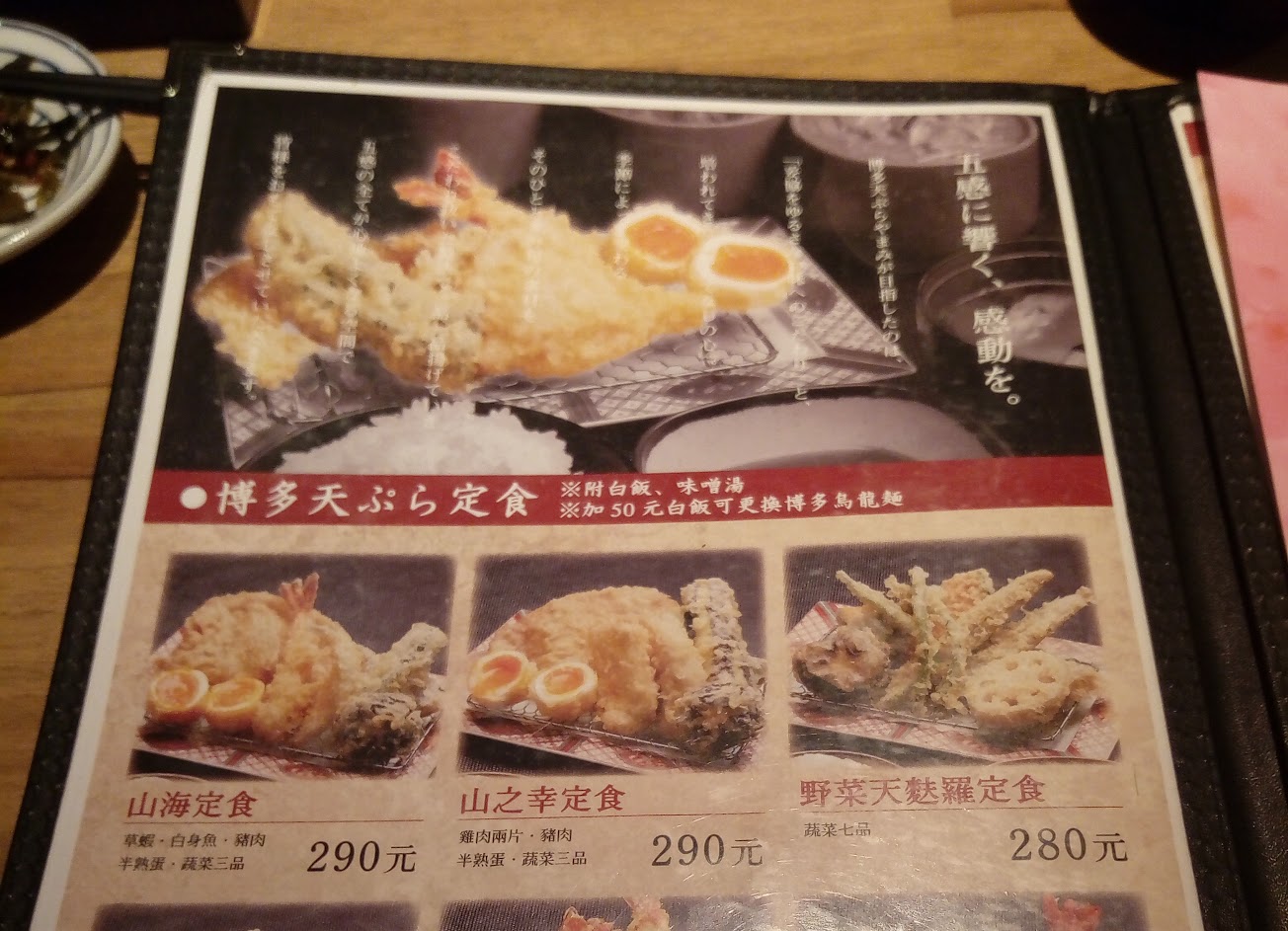 2019/3月點$290漲$10了山海天婦羅加一成$319炸物內容豐富不錯吃,明太子(尚可划算),鹹菜(像榨菜很辣)白飯可續。一開始給的剛好,有人還添飯,但我之前有吃別的,所以吃不完,剩下的還自己打包帶走(店不提供打包)。空調還可以,可能是我去的那天不熱,也可能改善了!沒有我不愛在外面吃的生菜沙拉真好。很多炸物餐廳生菜吃到飽,對我這種怕洗不乾淨又惜物的人來說,吃的很勉強。說不要又被覺得怪。因太遠,只來吃過三次。上菜越來越快,明太子越好吃