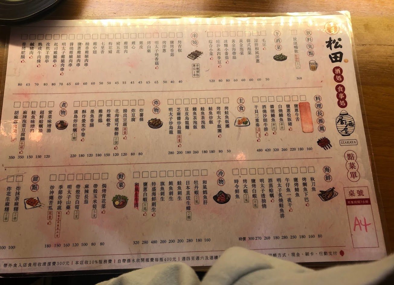 路段是比較偏僻的松隆路上,捷運從市府站出來還要走15分鐘左右,建議都要預約,店內空間不小,原本以為居酒屋沒有限時的,直到結帳有朋友來訪客想一起喝一杯,才被告知用餐三小時時間到了,要繼續吃喝必須重新計算低消❌❌❌是還蠻傻眼的!原先兩人已經消費了將近$1900,菜單上低消寫了是一人$500,也沒有特別限制或告知,和店家表示希望加位子,連續從店員、店長來說我們就是必須從新點單累積$1500才能再➕兩位朋友用餐…都吃了三小時了!哪能還吃得下?那如果不能加位子,我們也沒有要繼續留啊~不理解既然是規定為什麼要糾結這麼久