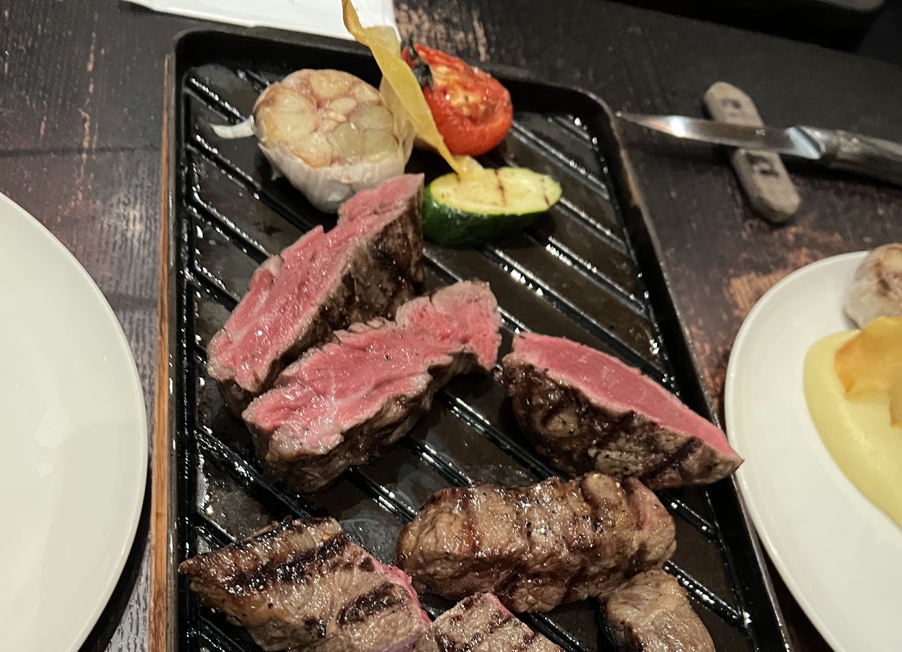 2021/11/21點了菲力牛排、羊排、伊比利松阪豬,肉品表現都很棒,沙拉吧的蔬菜種類多而且新鮮,愉快的聚餐!