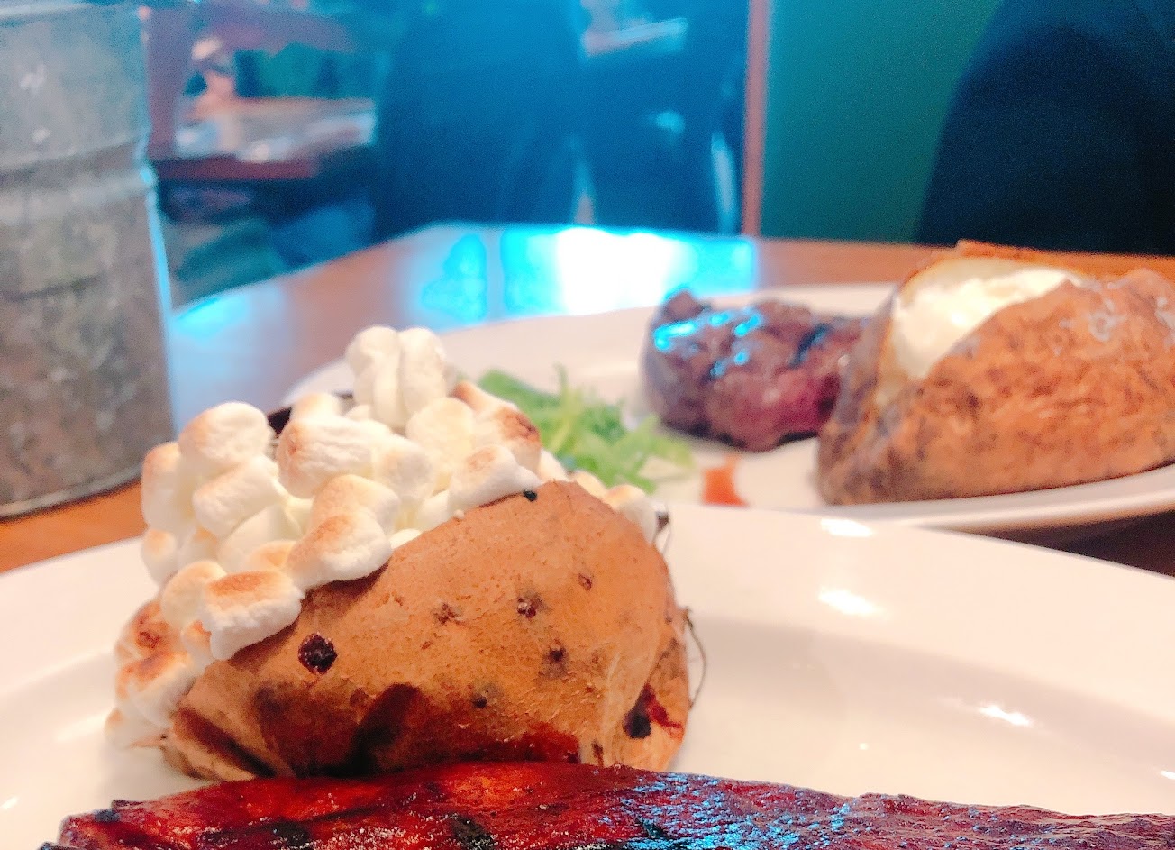 肋眼牛排五分熟剛剛好,不用搭配任何調味醬就很好吃,旁邊加價的烤地瓜棉花糖更是令人驚艷,地瓜的甜搭配棉花糖以及肉桂焦糖醬,可以當作甜點來吃了