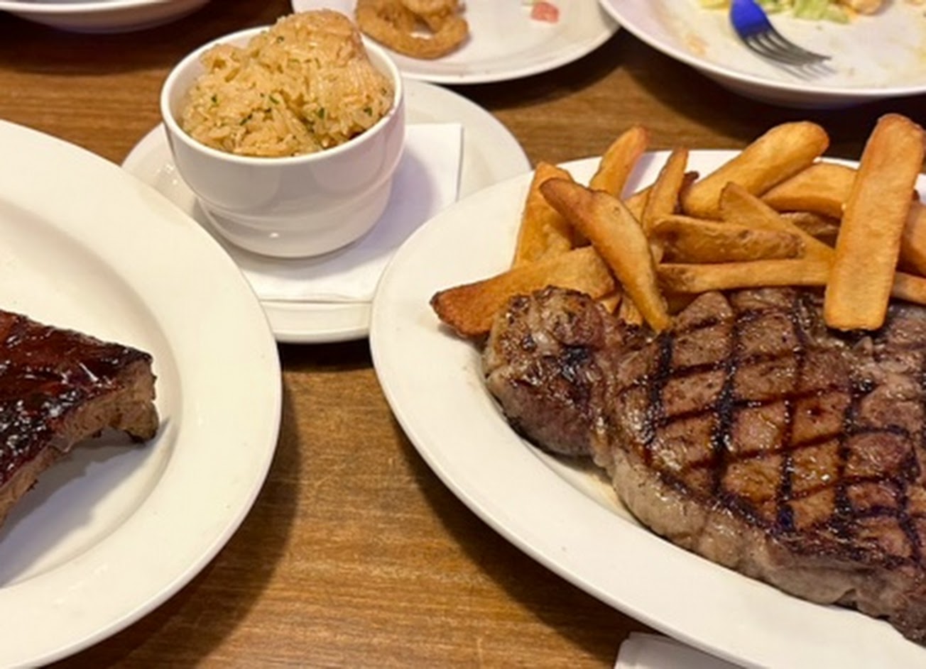 服務優 麵包花生可以續盤 麵包真的好好吃 沾上牛肉起司醬好適合 肋排一訪吃時有點柴 二訪吃時很好吃! 肋眼和紐約客也很好吃 炸雞有鎖住湯汁很嫩 配料也是很美味!