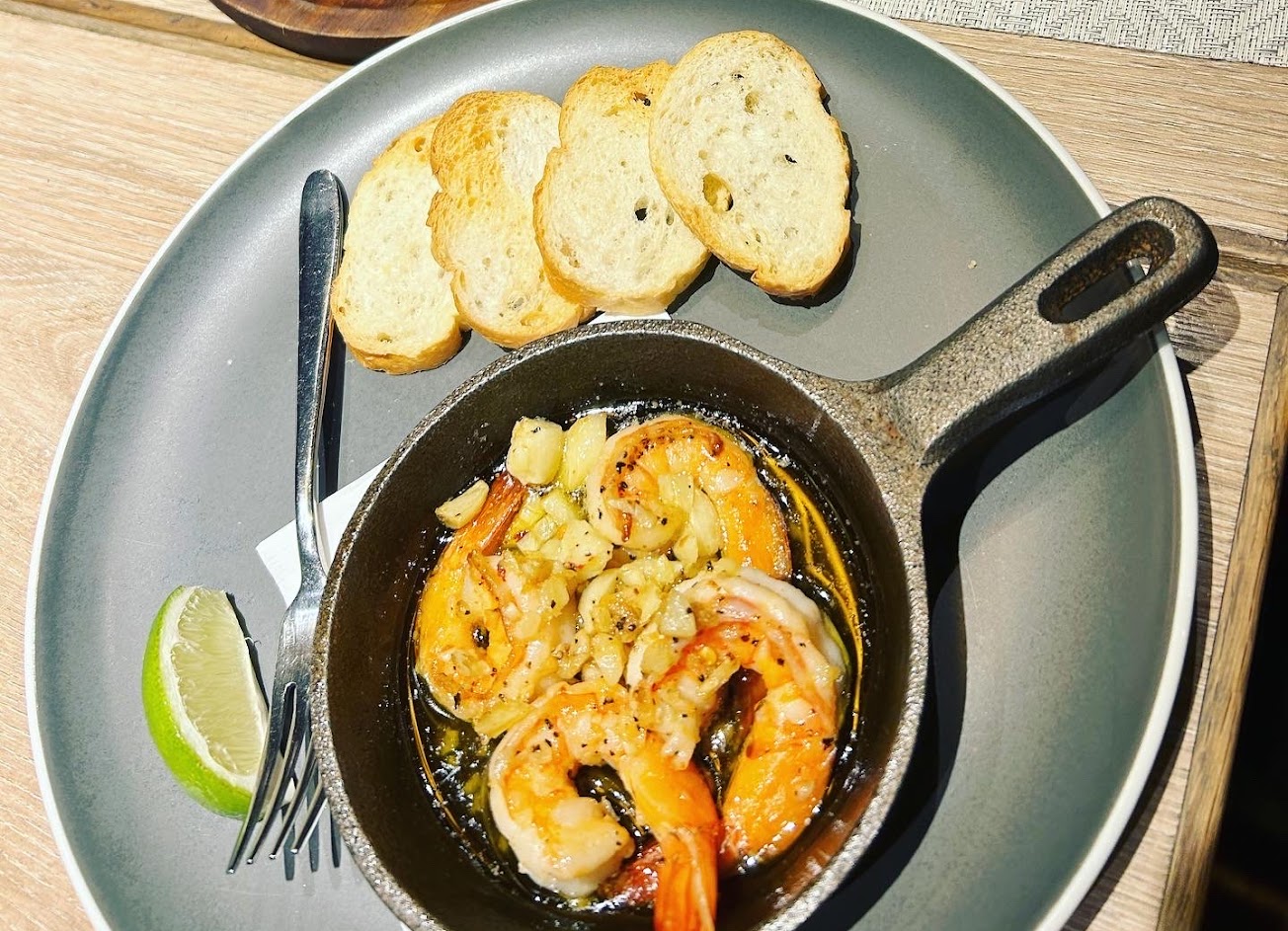 香蒜蝦奶油給的很足夠,麵包酥脆口感,不能秀氣食用,要用手直接進食?