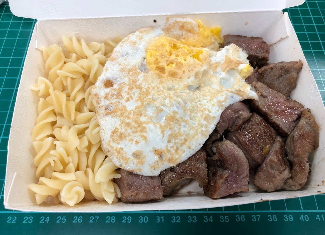 今天外帶肋眼牛排買一送一,肉硬柴,咬的我下巴晚上還在酸,真的不大好吃……