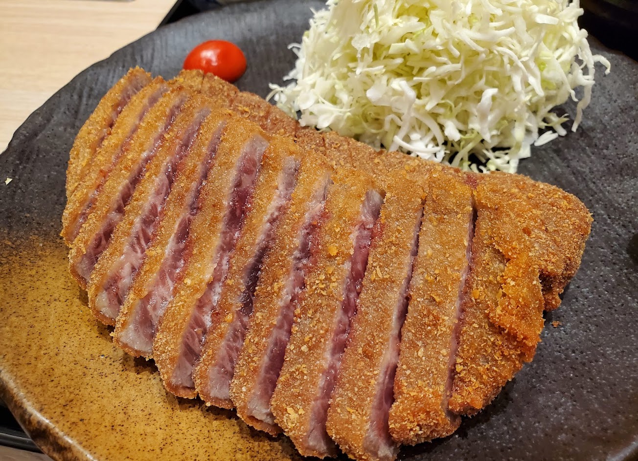 幾乎是日本原汁原味,很簡單就只有一個品項,炸牛排。酥皮很有特色,非常細緻酥脆,牛排軟嫩,很值得一吃。