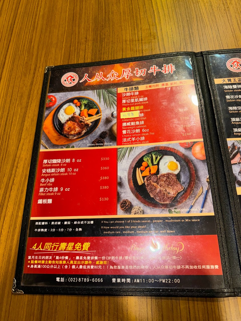 2024最新在地推薦餐廳的菜單_人从众厚切牛排 北醫店的菜單、圖片