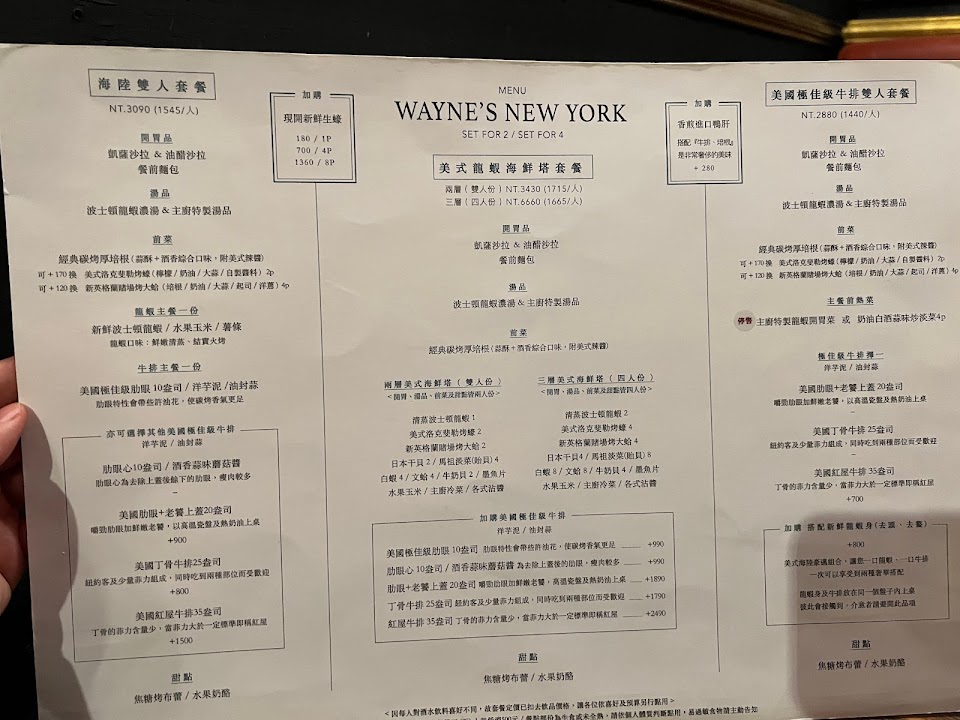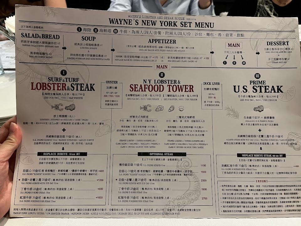 2024最新在地推薦餐廳的菜單_Wayne’s New York 瑋恩紐約美式龍蝦牛排餐廳的菜單、圖片
