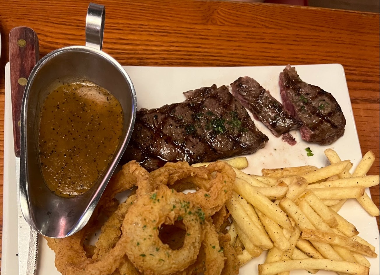 首推他家豬肋排,肉很軟嫩;肉輕輕一撕就可以從骨頭上拉下來,很好吃👏 但另外我們也點了沙朗牛排,肉質跟豬相比真的是…天差地遠 超級硬(我們點三分熟)是沒辦法咬斷的那種硬,最後必須先用刀切成一小塊一小塊才能勉強咀嚼吃下去…