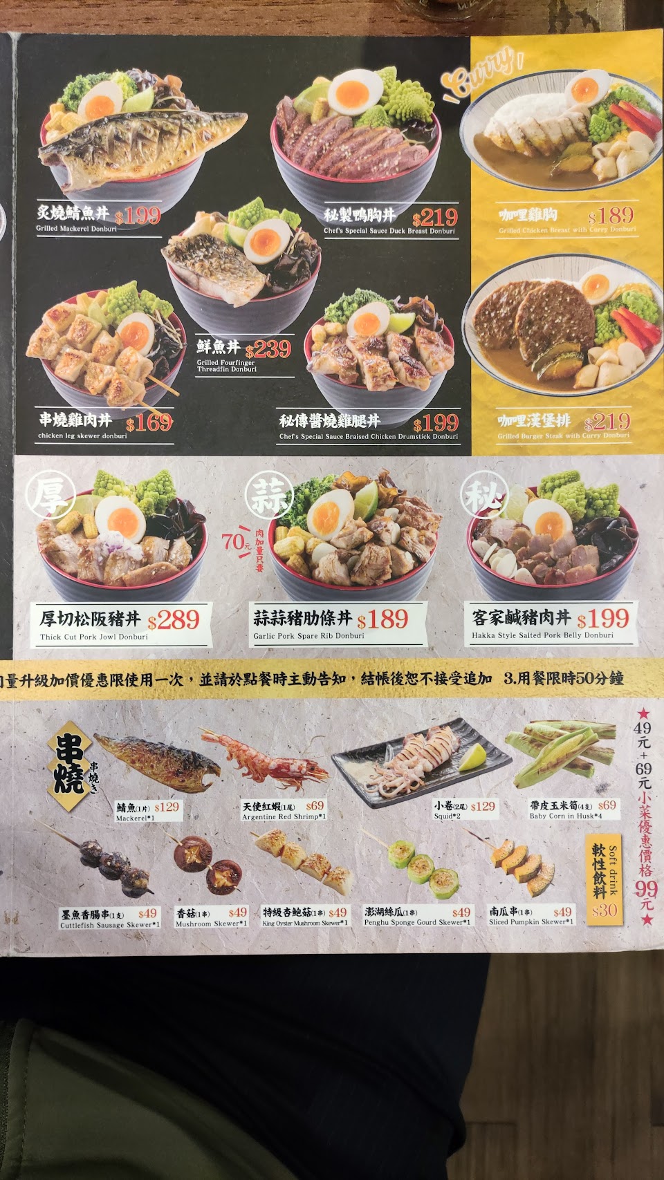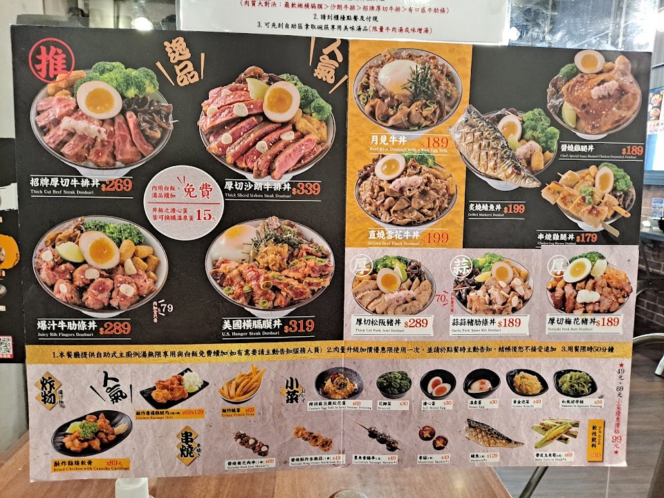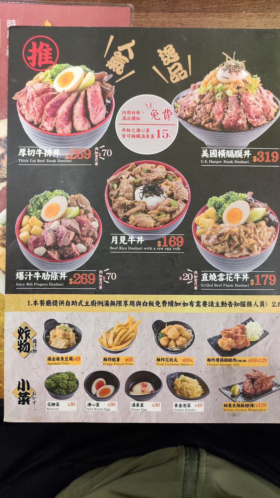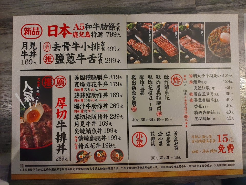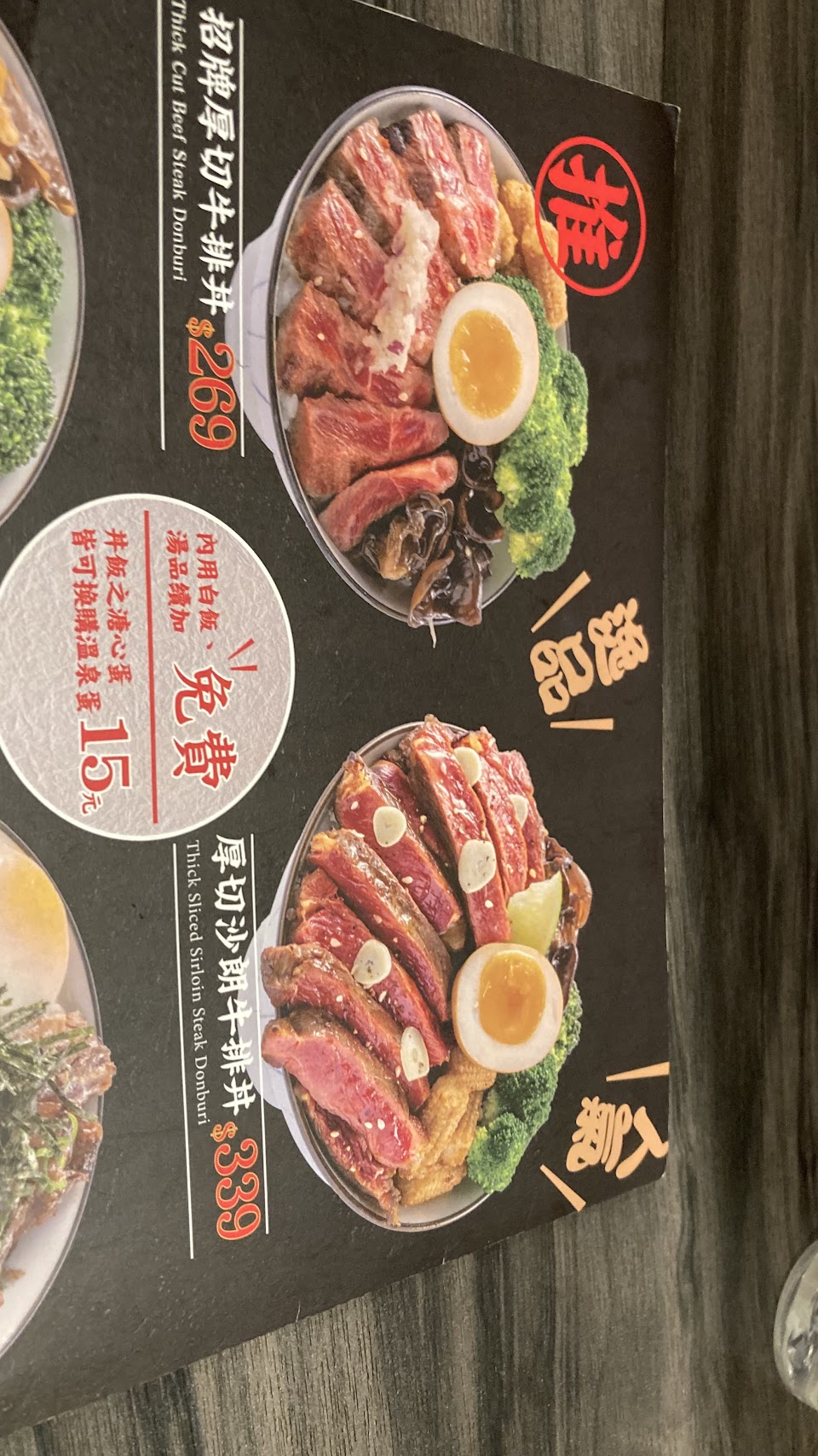 秘製醬燒雞腿丼 蒜蒜豬肋條丼飯 牛肉湯 免費 直燒雪花牛丼飯 碳烤厚切牛排丼