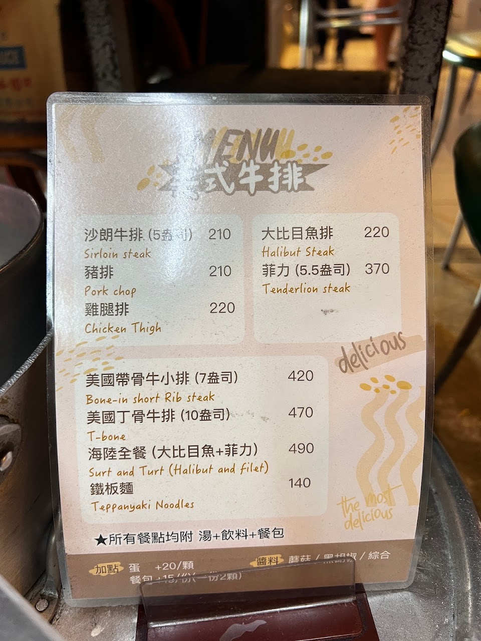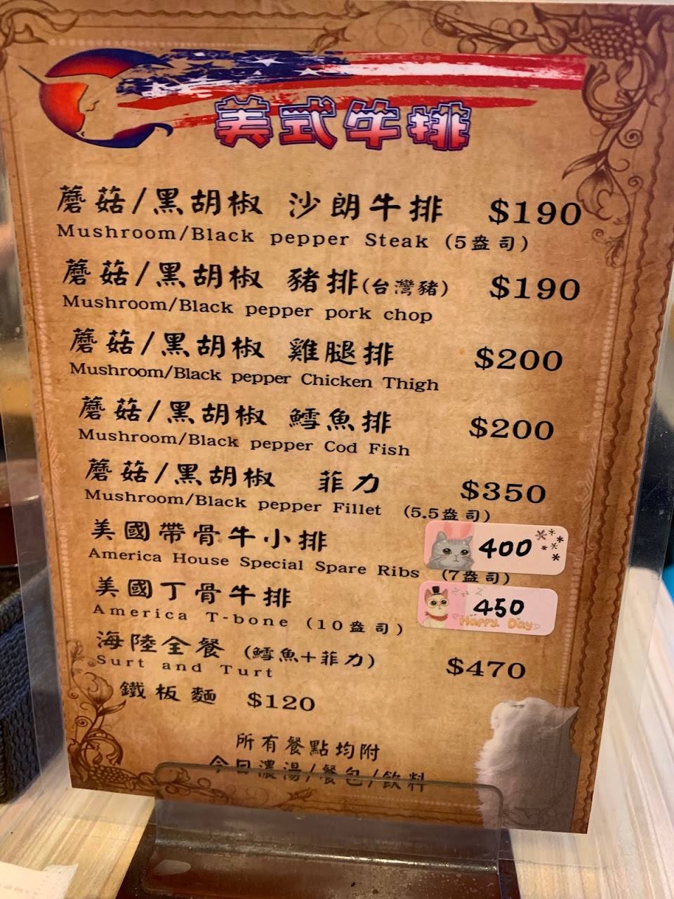 2024最新在地推薦餐廳的菜單_美式牛排的菜單、圖片