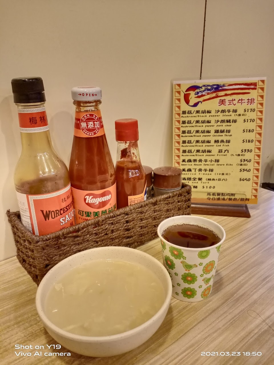 生意蠻好的,一樓位置不多,也靠近廚房,所以會有油煙味,店裏人手有時候會不足,所以服務的部分是沒辦法很周到,重點的牛排跟鐵板麵味道表現不錯,七分熟也不會太硬,麵條是粗麵,190元附餐包兩顆,飲料濃湯可續用,夜市就不要求太多。
