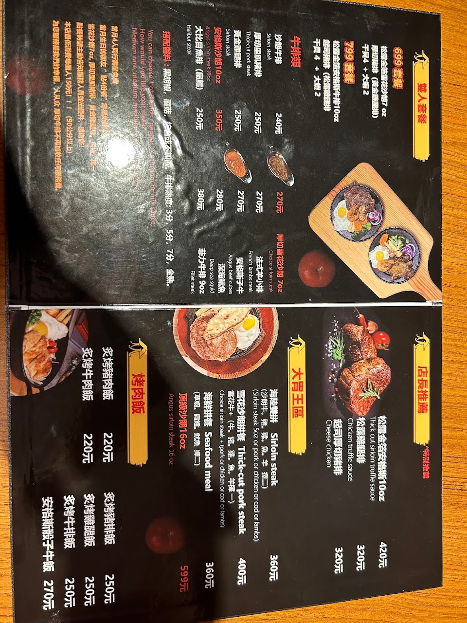 服務人員態度非常好,做事也很積極! 餐點方面:16oz頂級莎朗7/31前半價優惠,實在是非常超值,cp值很高! 服務 內用 餐點類型 晚餐 平均每人消費金額 $200-400 餐點:5 服務:5 氣氛:5