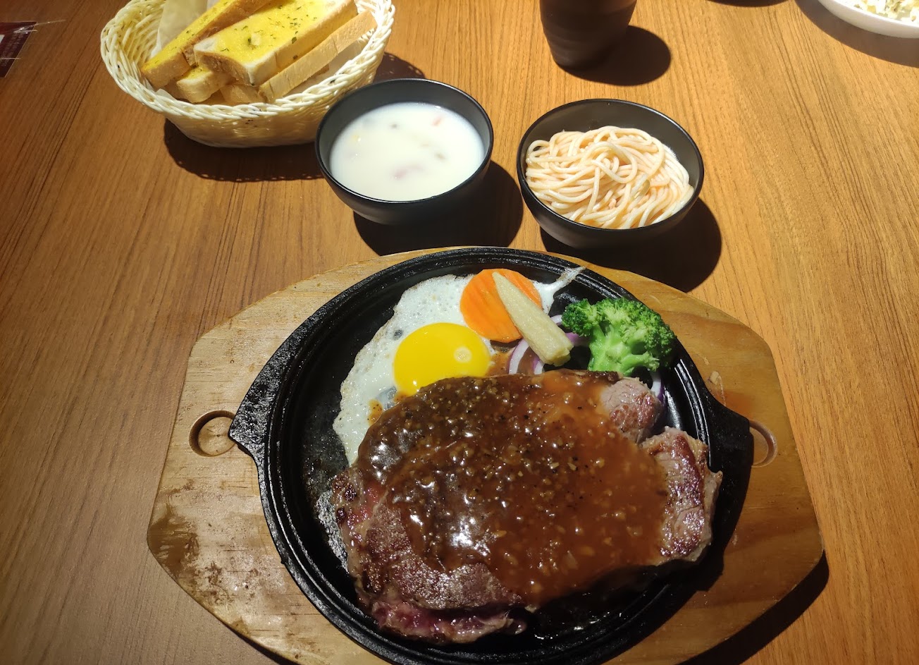 牛排好吃上菜快速,牛肉湯內有牛肉,餐廳明亮乾淨,服務人員服務親切
