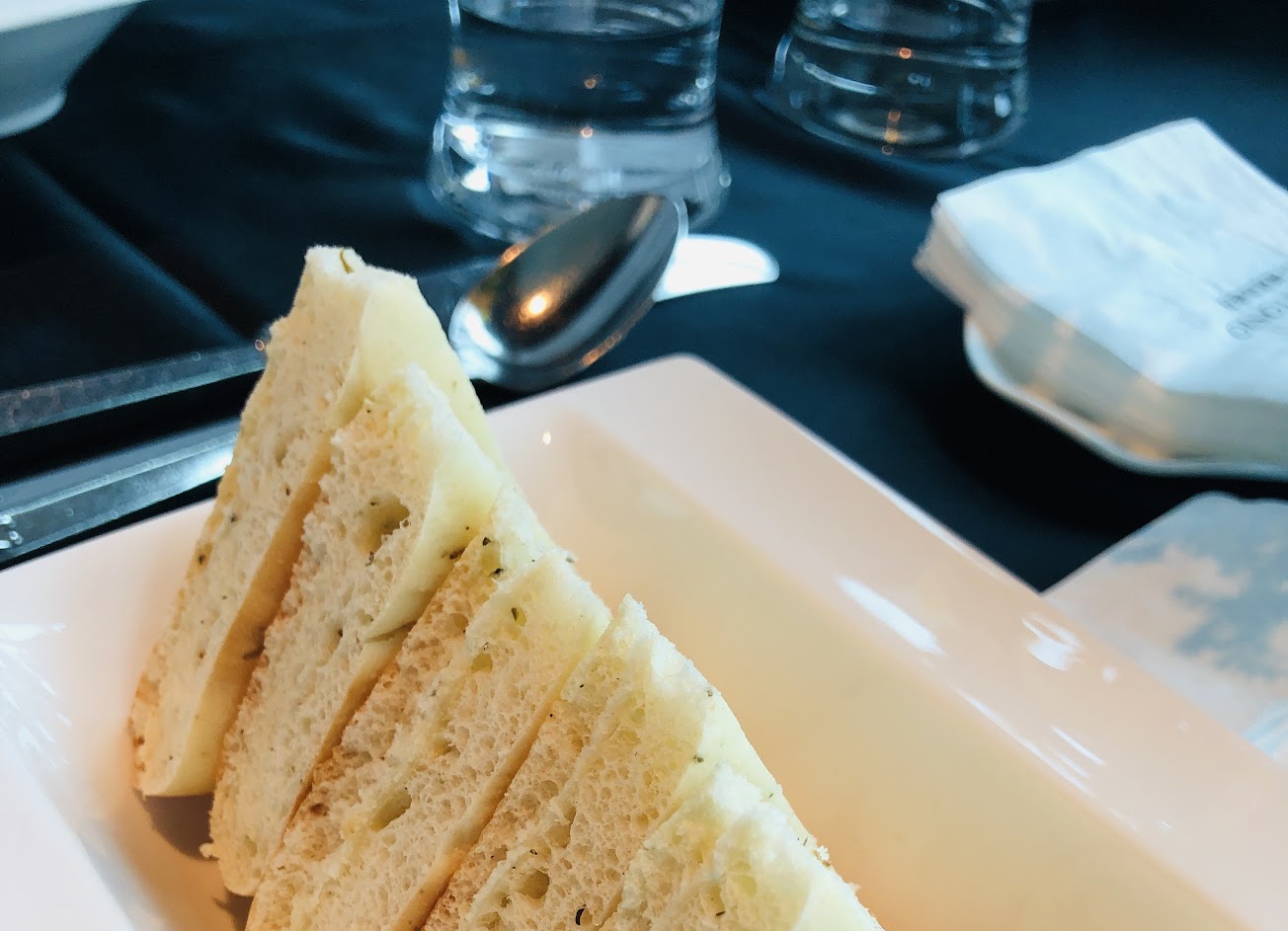 餐前麵包,是真的好吃,搭配那個醬 但是主食,副餐那些,真的不是很推 完全是吃氣氛的,女廁的景色,超級讚 裝潢也很厲害? …