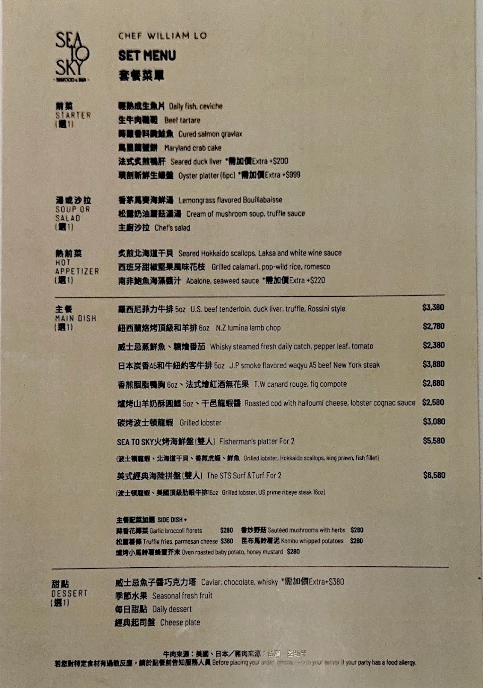2個人點個前菜、湯、海陸主菜、配菜跟甜點就很飽(原本還要點個炙燒和牛松露鮪魚捲,結果被服務生勸退?)