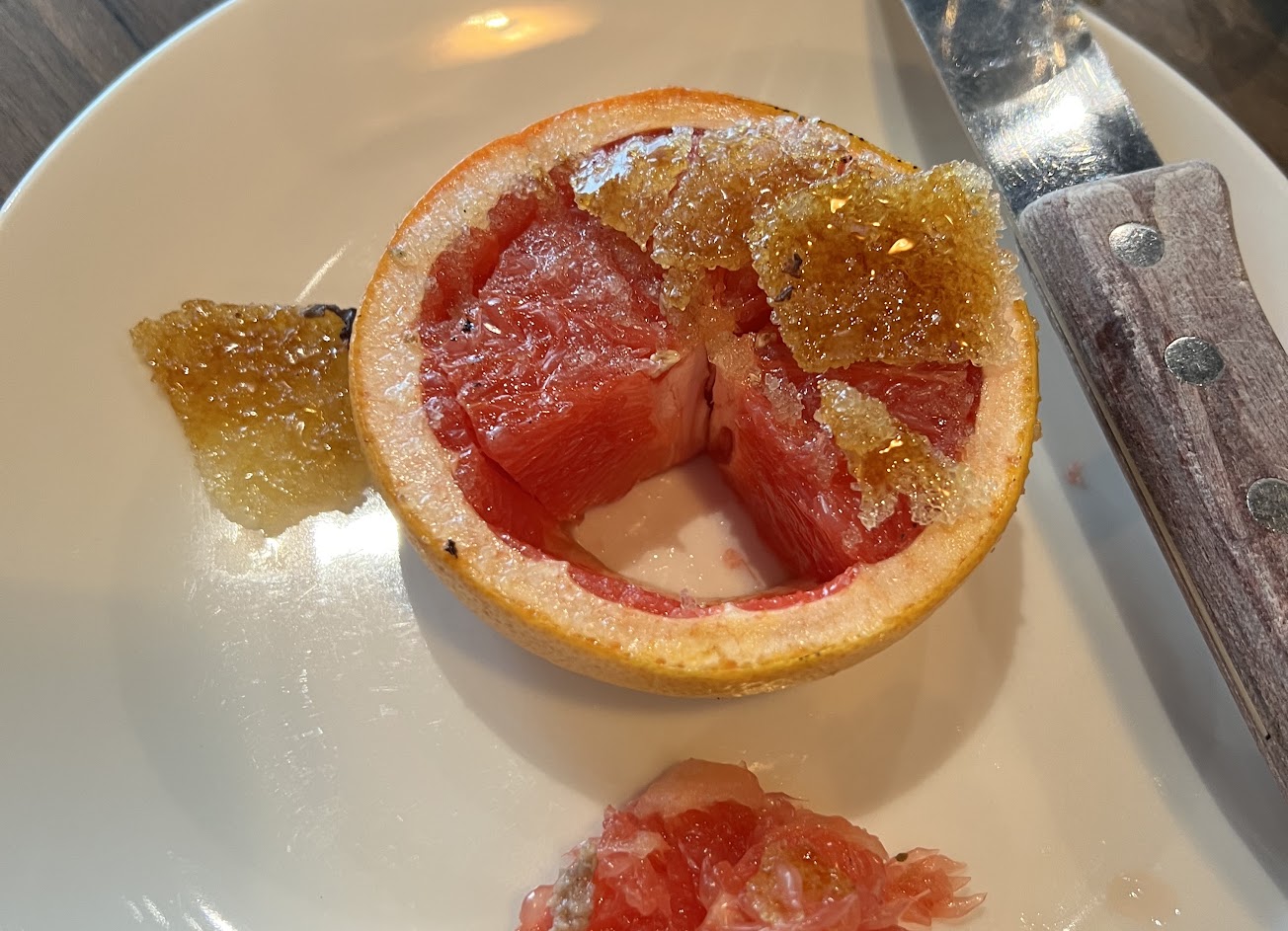漢堡旁 放了一顆料理方式不明的葡萄柚 一入口 酸到掉眼淚?
